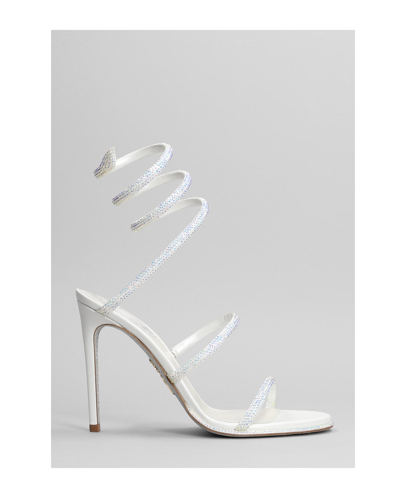 Sandals in white leather, crystals detail, snake strap, two straps, leather sole, Made in Italy, 100% leather, 110 mm heel