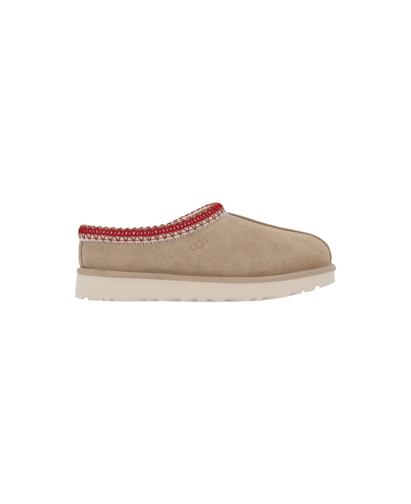 Ugg 'tasman II' brown leather mules with round toe, contrast details, embossed logo on the side, sheepskin lining, 'EVA' rubber sole. Composition: 80% Leather, 20% Fabric