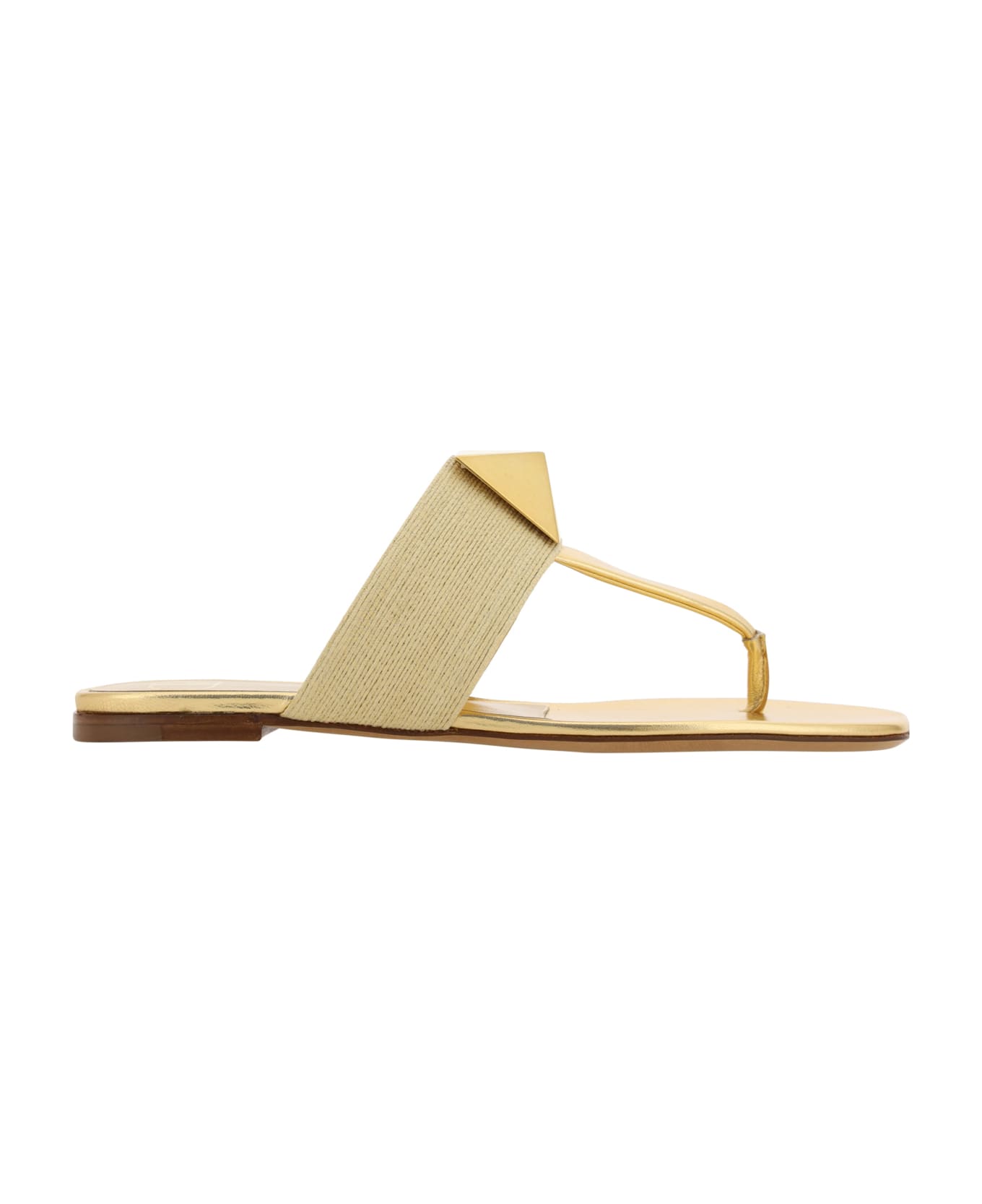 Calfskin thong sandals by valentino garavani, iconic brand's rockstud maxi stud embossed on front and gold-plated, flip-flop design, branded insole, square open toe. Composition: 100% % Calf Leather Bos Taurus, 100% % Calf Leather Bos Taurus