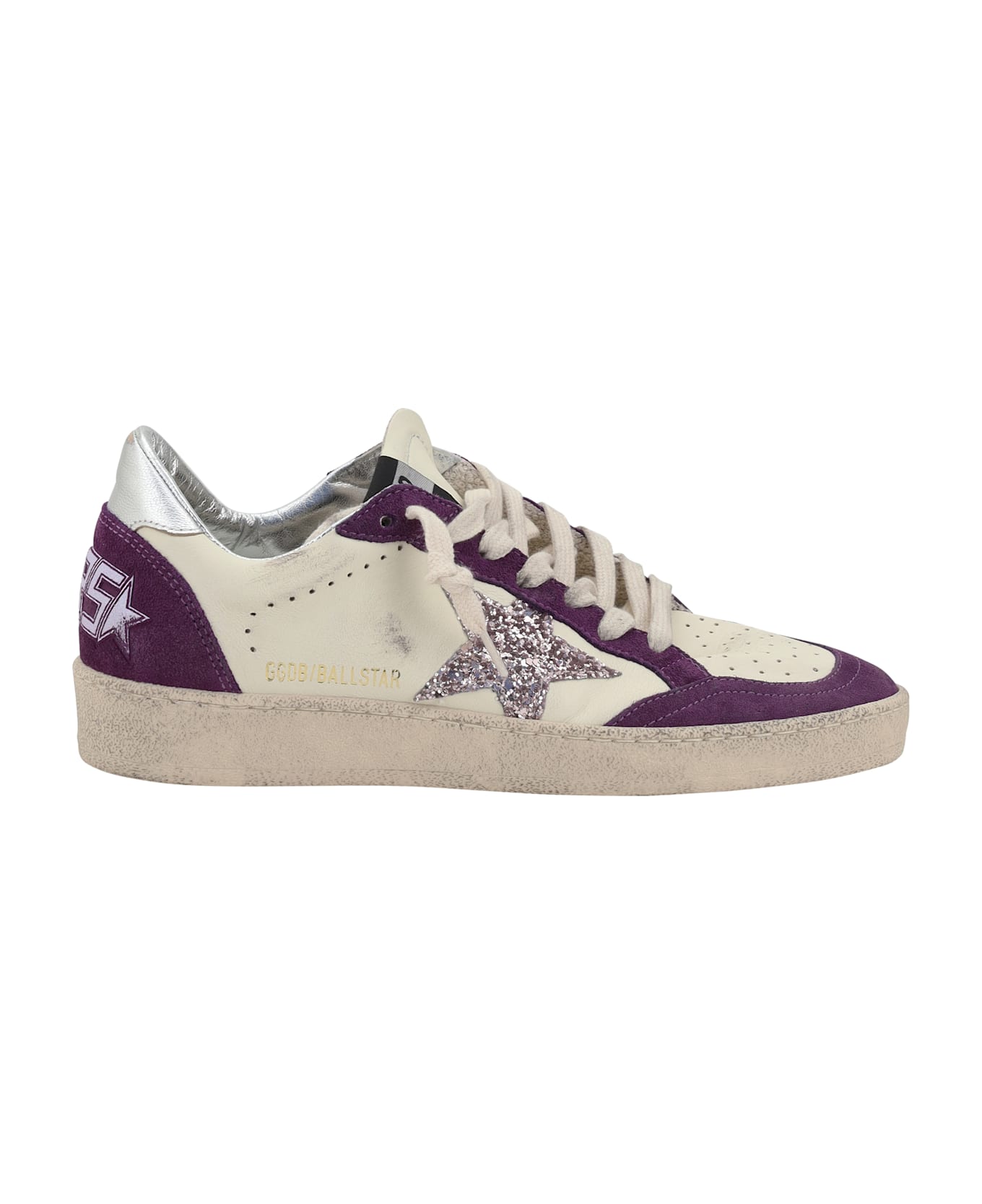 Golden goose's ball star leather sneakers combine comfort and urban style with a distinctive design. the lace-up closure and perforated round toe offer a comfortable fit, while the flat sole provides stability. the iconic star on side panel and press-stud logo add a unique touch, while the front tab with contrasting embroidered monogram completes the look. the vintage, worn-in design gives them an authentic, characterful look.