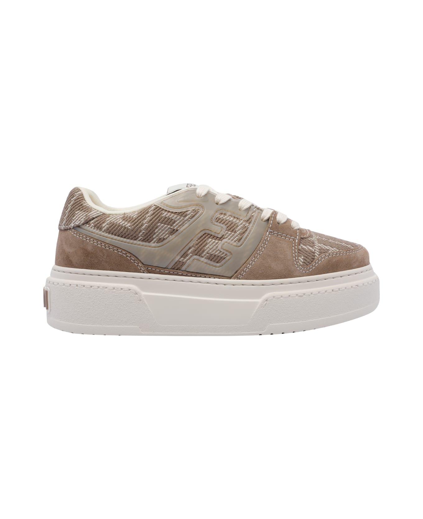 Fendi brown Platform Match sneakers, round toe, platform model, lateral FF logo, leather upper, laces closure Composition: 100% Fabric, 100% Calf Leather/rubber Sole