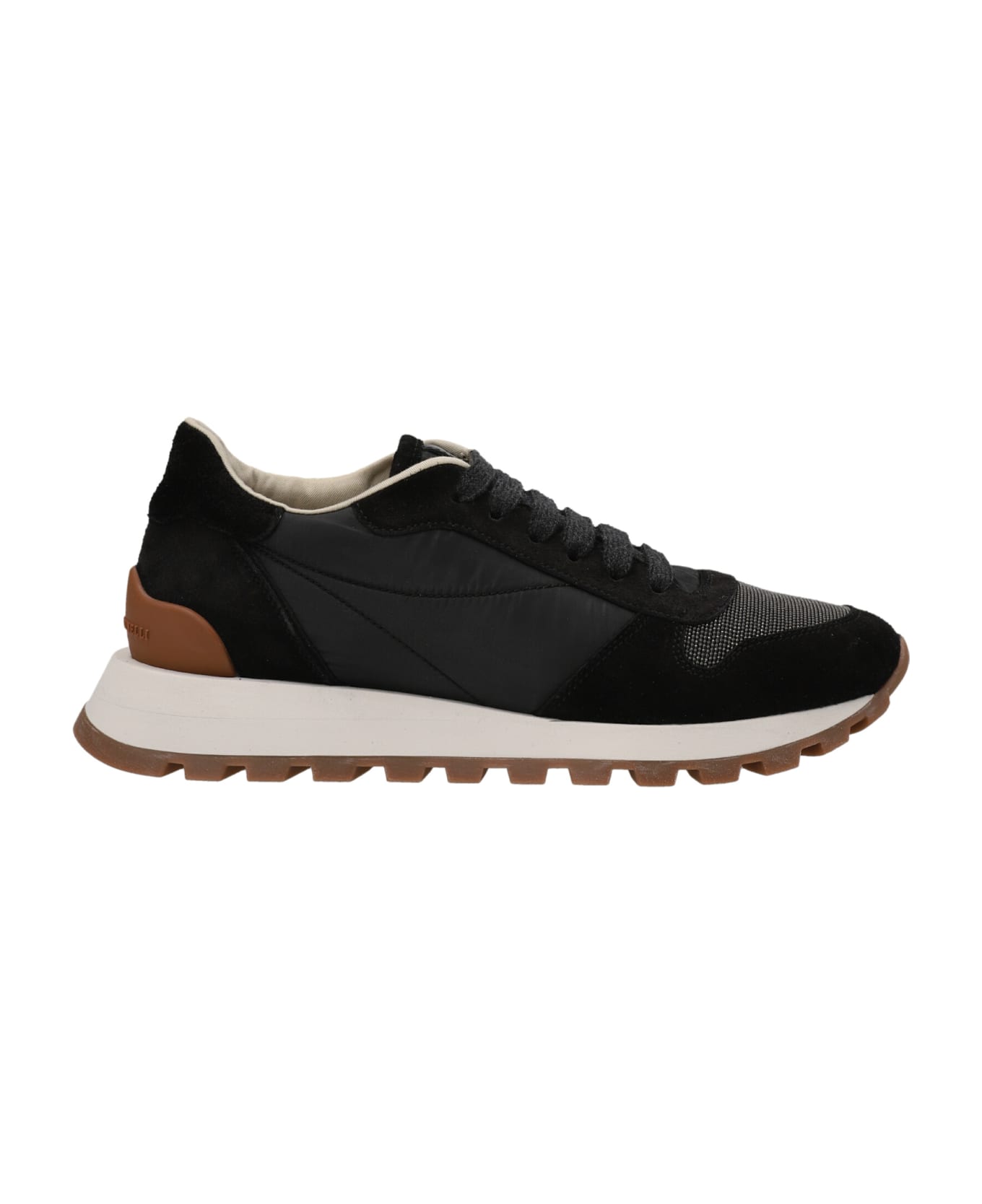 'Monile' leather and suede lace-up sneakers with 'Monile' inserts, and contrast rubber sole. Composition: