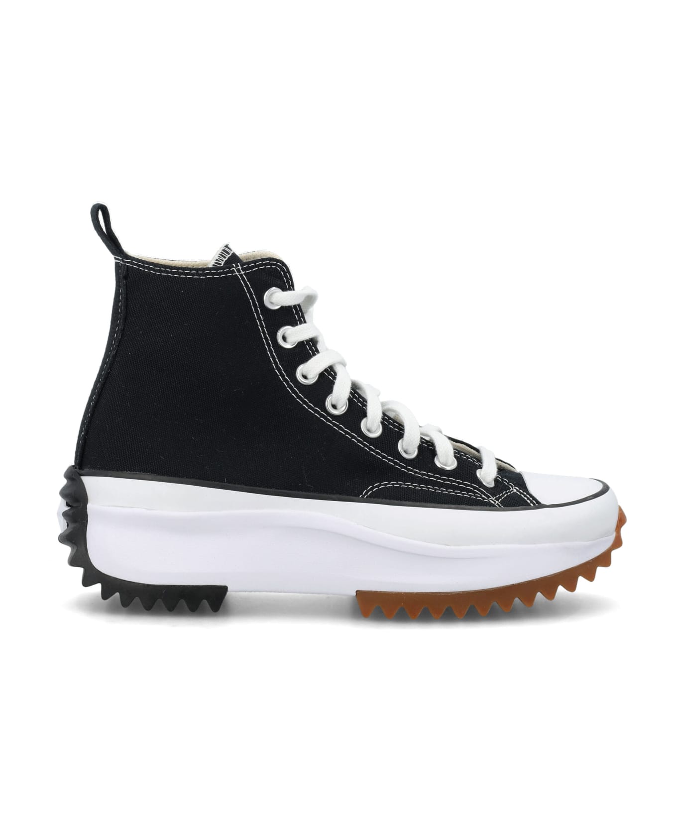 Canvas Run Star Hike High Top By Converse. Featuring: High Top Lace Up Fastening Round Toe Rubber Toe Cap Chunky Platform And Jagged Rubber Sole Chuck Taylor Ankle Patch Smartfoam Sockliner For Cushioning Two-tone, Exaggerated Rubber Outsole