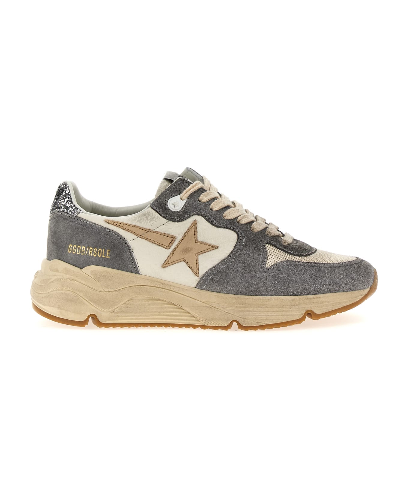 'Running Sole' sneakers in leather, technical fabric and suede, glitter heel, lace-up closure, rubber sole, used-effect details. Composition: 81% leather 16% polyester 2% pet 1% cotton