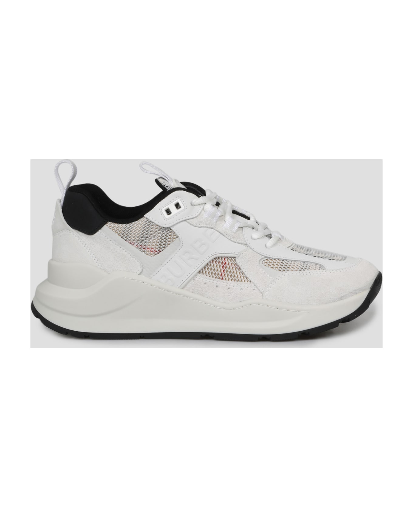 Burberry Sean sneakers, in in leather, suede and Vintage Check mesh. - SS23 - Round tip - Lace up - Embossed logo on the outside - TB Monogram embroidered on the heel - Rubber sole - Made in Italy - 31% cotton, 31% polyester, 18% leather, 17% calf suede, 2% polyurethane, 1% polyamide