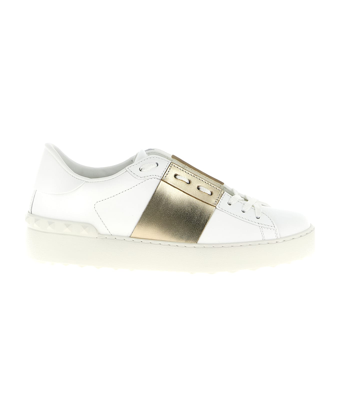 'Open' calf leather sneakers with contrast metallic band, embossed logo on the tongue, lace-up closure, rubber sole with stud detail on the back. Composition: 100% calfskin leather (Bos Taurus)