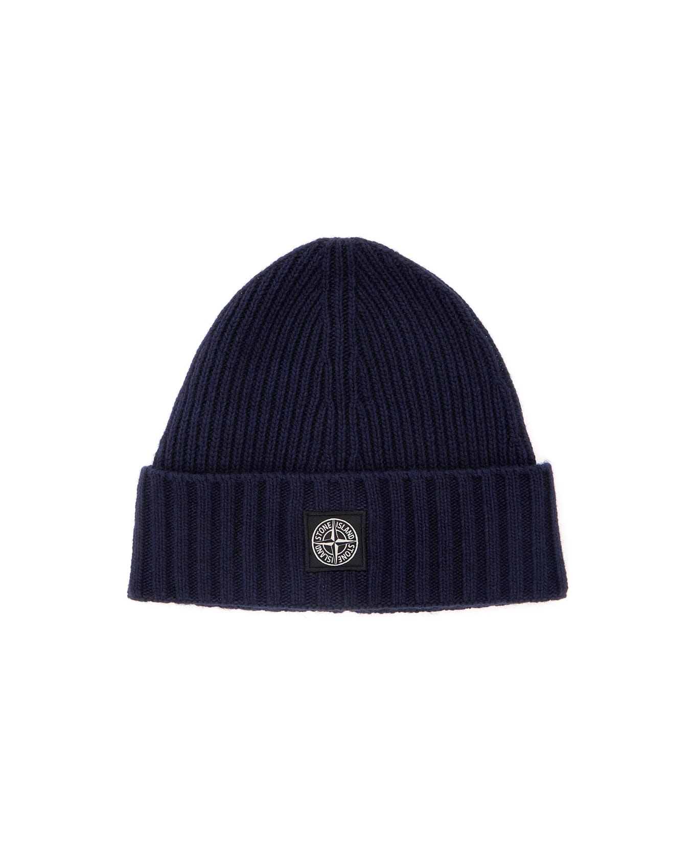 Beanie Blue Oval crown Turn-up brim Logo patch on the fornt Wool blend