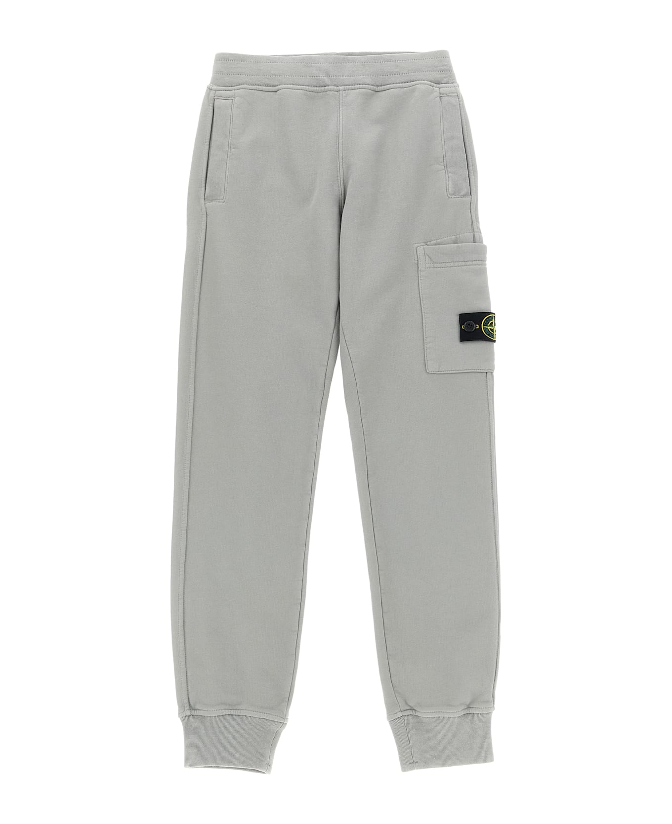 KIDS Brushed cotton joggers with cargo pocket and logo badge, drawstring elastic waistband, pockets, ankle cuffs.
