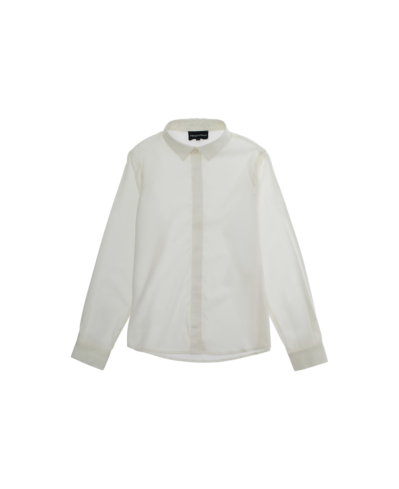White Shirt With Classic Collar And Embossed Logo In Cotton Boy