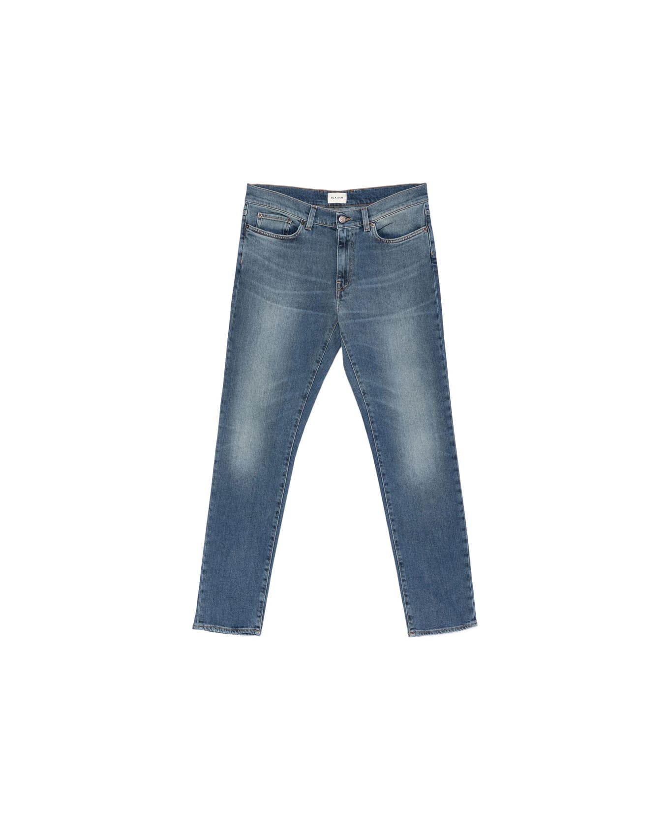 blue tonal stitching five pockets belt loops button fastening