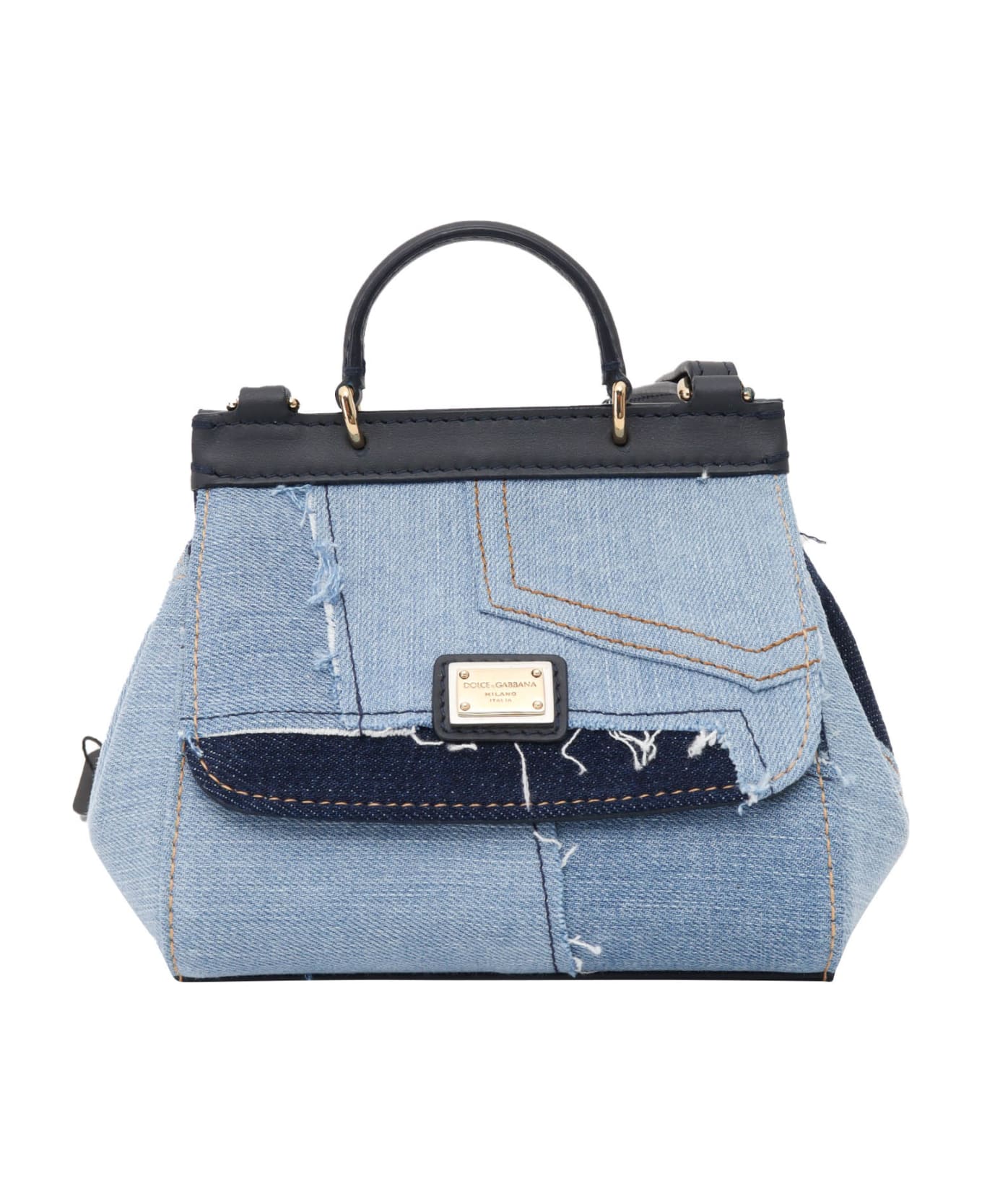 Silk denim and calfskin bag, logo plate, single top handle, flap with magnetic closure, adjustable shoulder strap