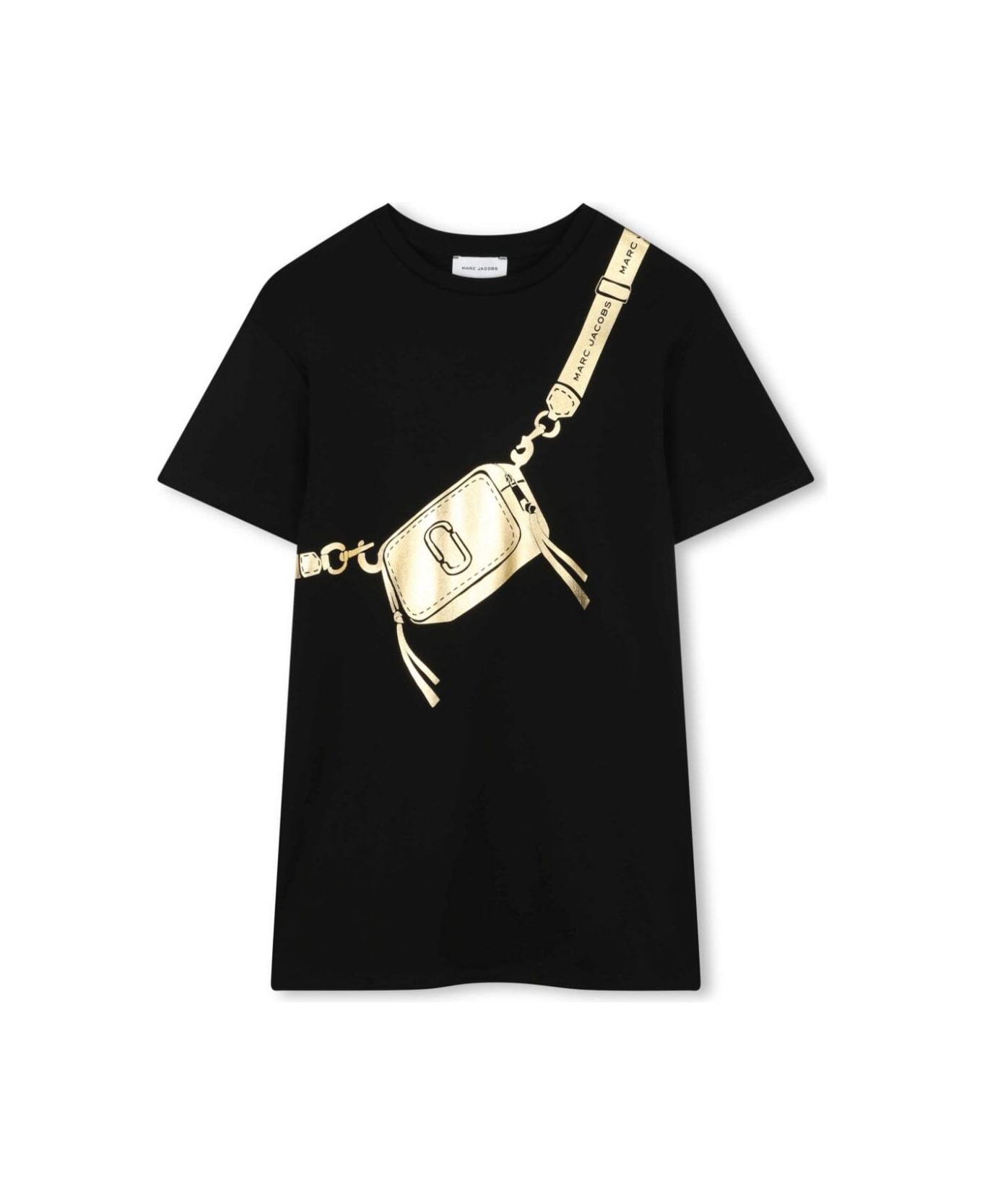 Black Crewneck Dress With Logo Print On The Front In Cotton Girl