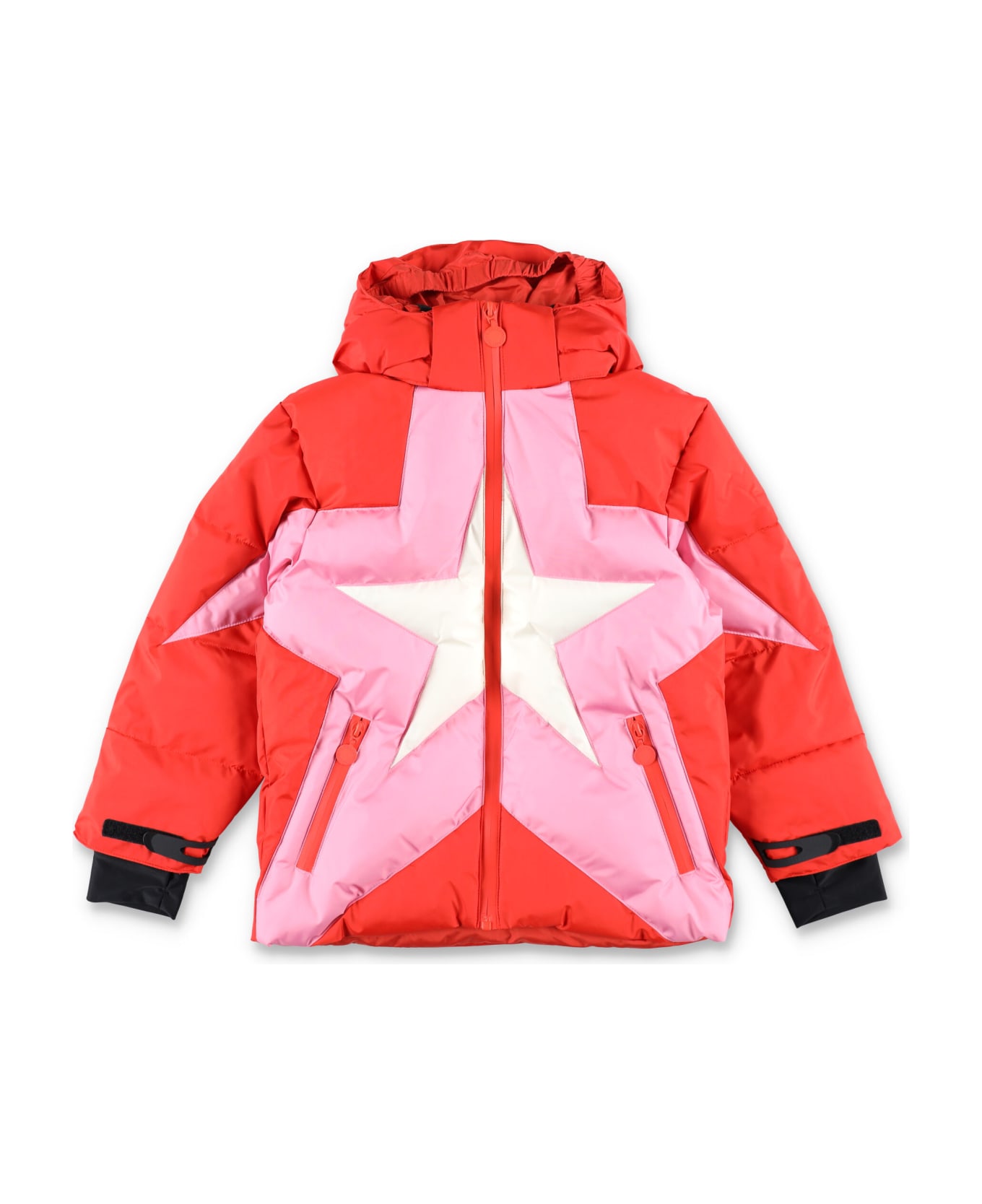 Star Jacket By Stella Mccartney Kids. Featuring: Regular Fit Durable Polyester Fabric High Collar Long Sleeves With Adjustable Cuffs Front Zip Closure With Red Trim Two Front Zip Pockets Star Appliqué Design Quilted Construction