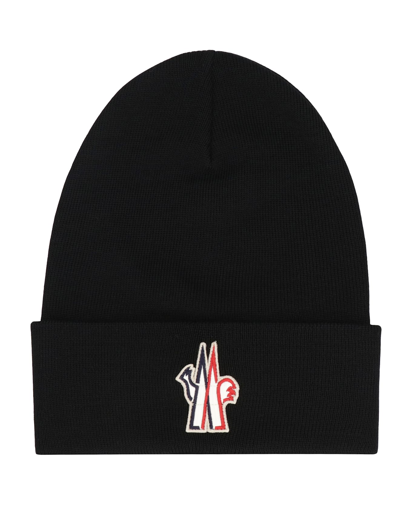 Knit hat in black color, characterized by a simple and versatile design. it features a cuff with a small embroidered logo on the front, which adds a touch of style. made from a soft and warm material, it is ideal for cold days.