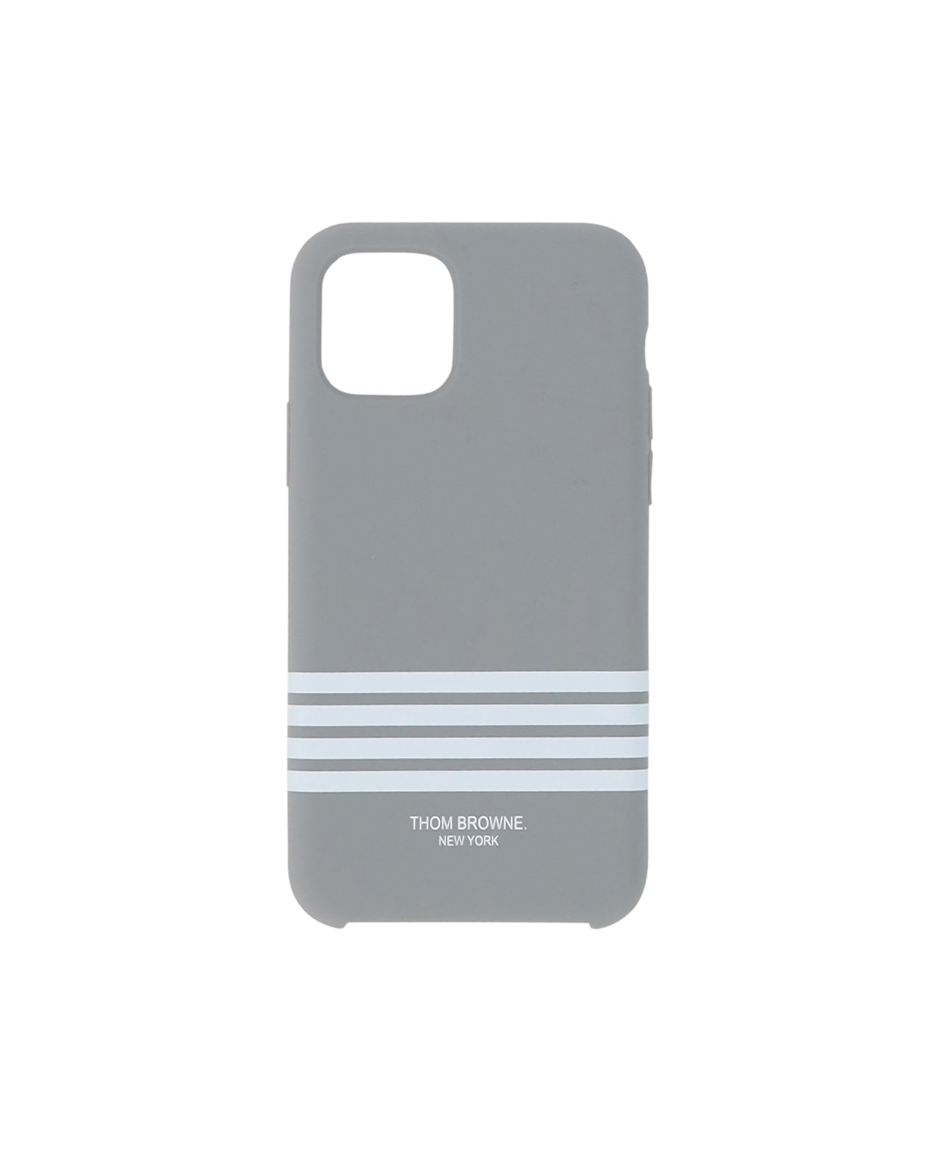 Iphone case by thom browne, model 11 pro, silicone design, iconic contrasting horizontal brand bands on back, iconic contrasting brand monogram on back. Composition: 100% % Silicon *sost Con Sil*