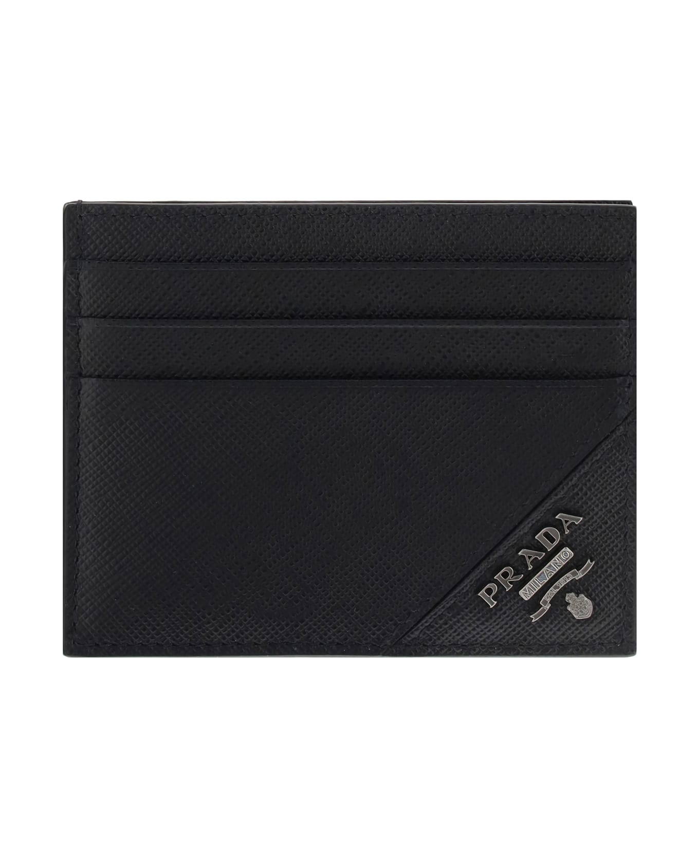 Prada's leather credit card holder is a compact and elegant accessory with six card slots distributed on the front and back. it is embellished with a blue leather detail with a metal plaque and logo on the front, while the interior features the printed logo, a symbol of authenticity and style. Composition: 100% % Calf Leather Bos Taurus