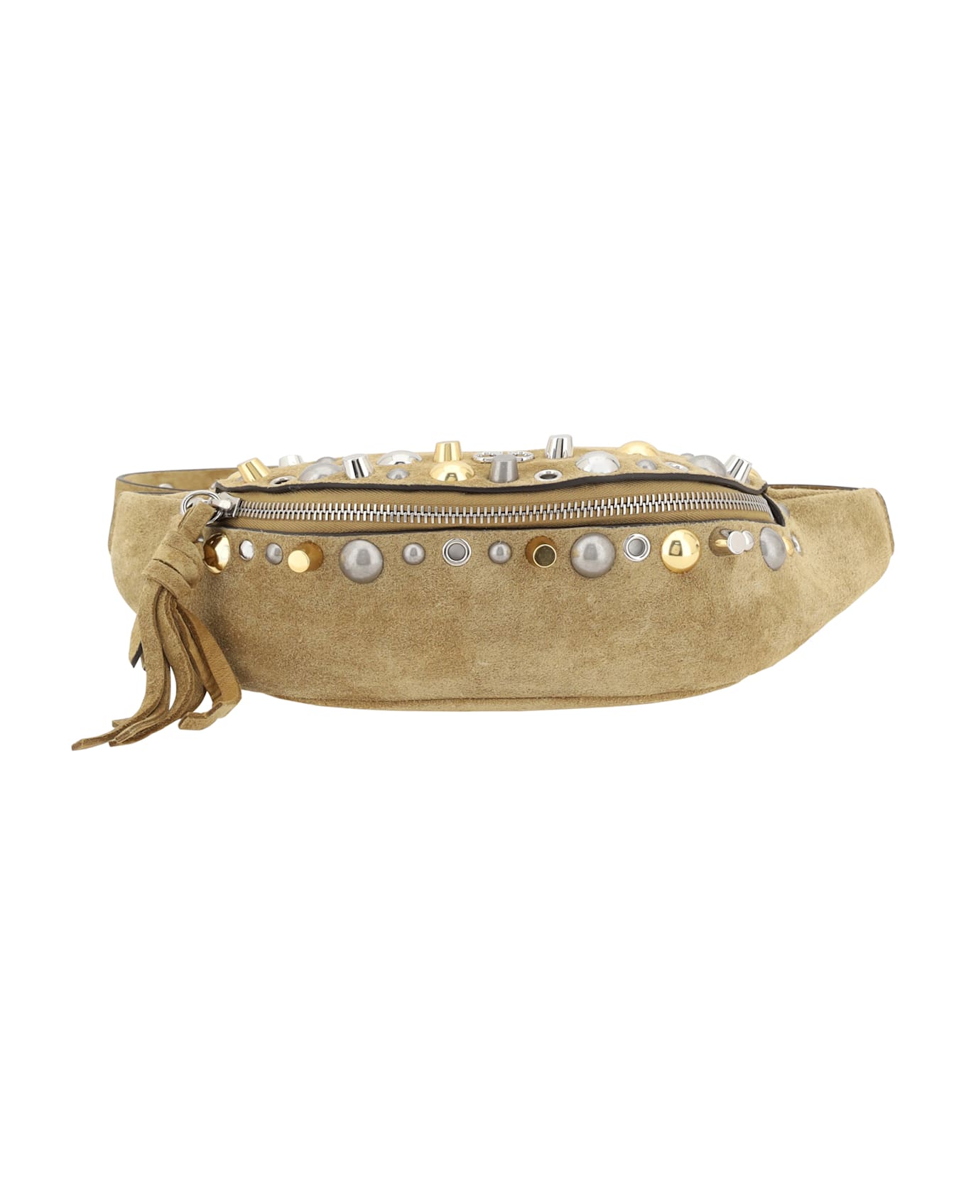 Leather fanny pack by valentino garavani featuring front zipper closure, adjustable waistband, brand's iconic logo plaque applique on front, spherical stud detail on front, suede leather design. Composition: 100% % Calf Leather Bos Taurus