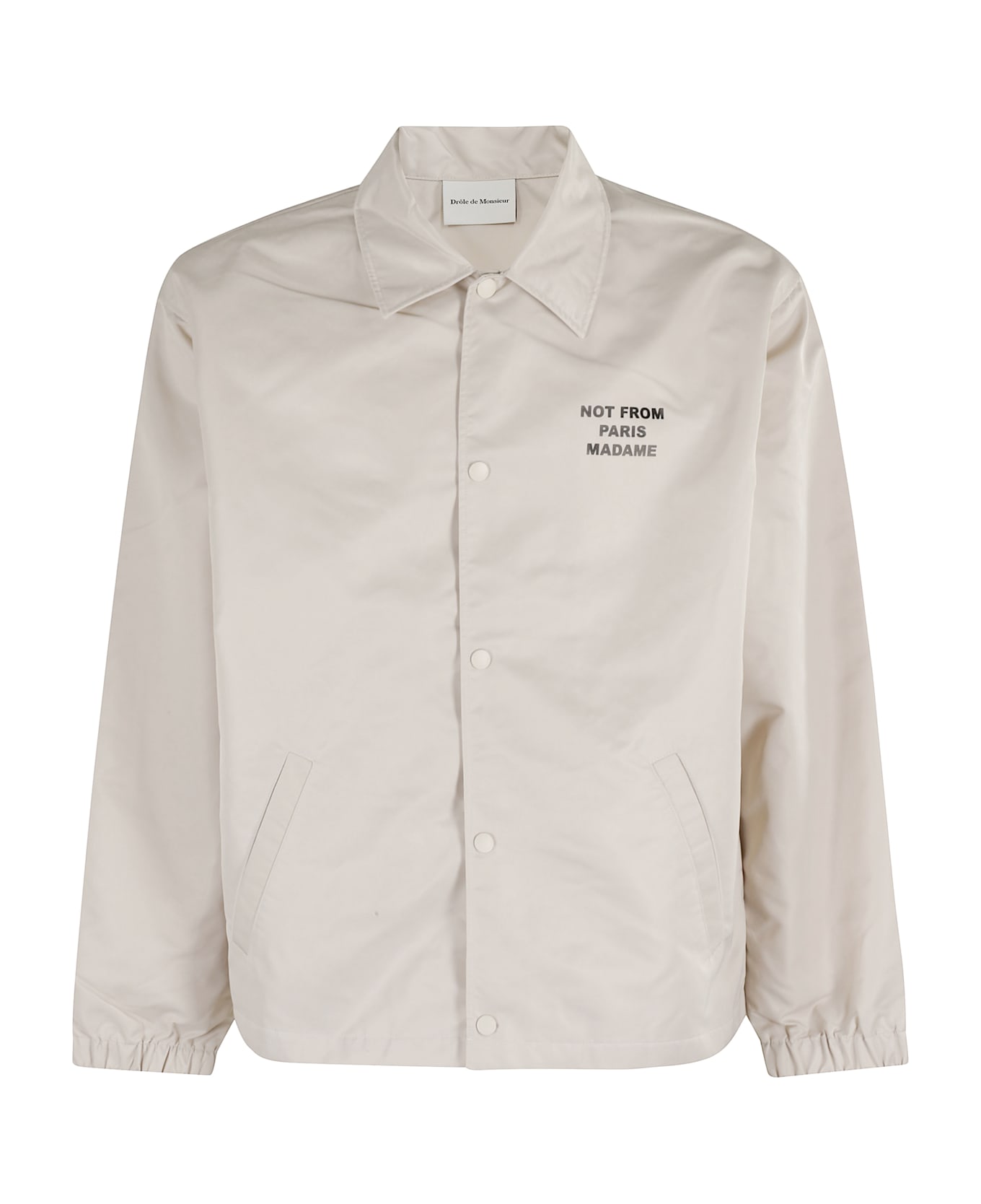 Slogan jacket -Drole De Monsieur -Color mastic -Long sleeve -Center button closure -Side pockets -Classic collar -Logo on chest and back