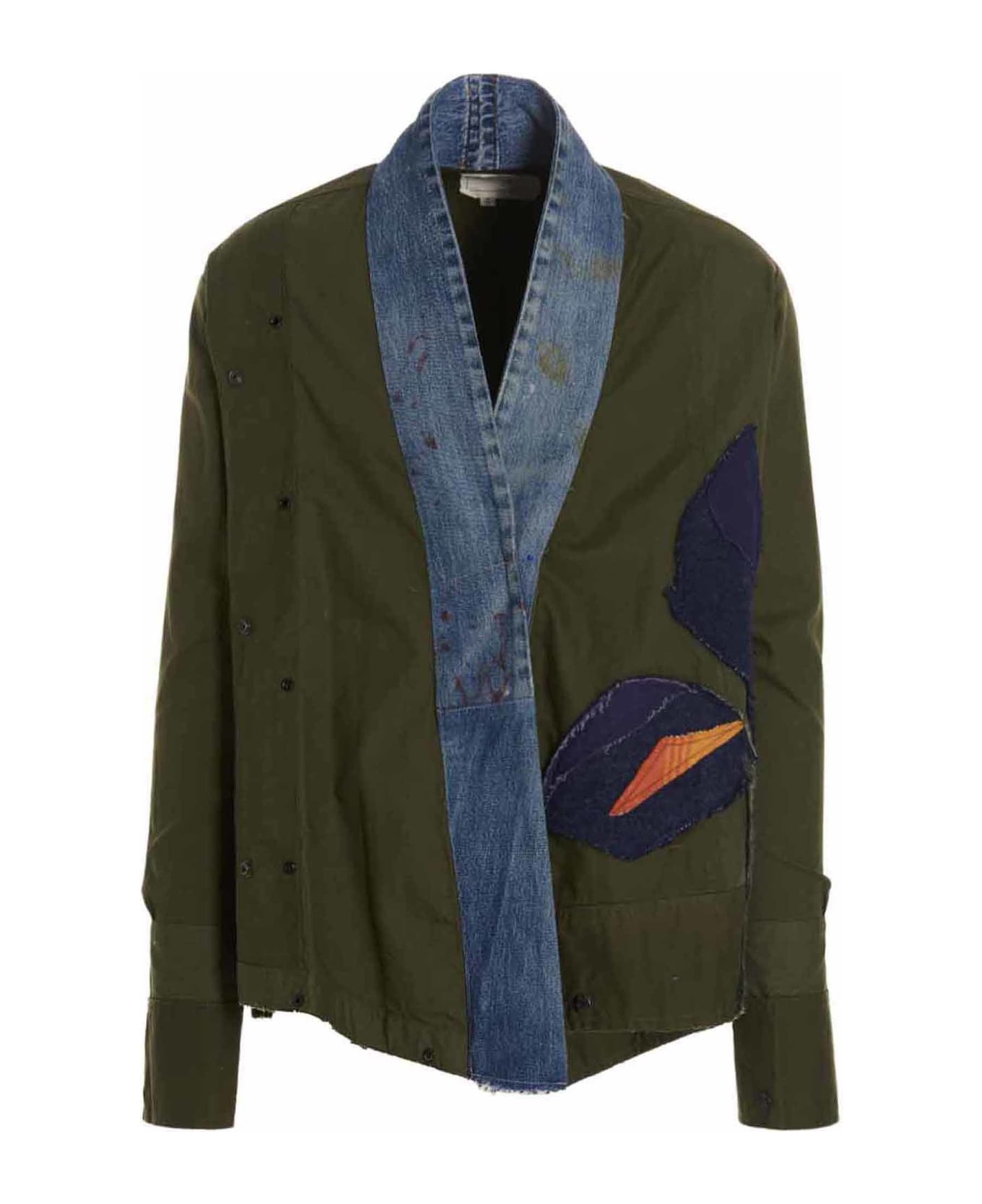 Cotton and wool 'Sleeping Bag Iris' jacket, with inserts in contrasting fabrics and colors, a front opening, long sleeves, and used effect details. Composition: 95% cotton 5% wool