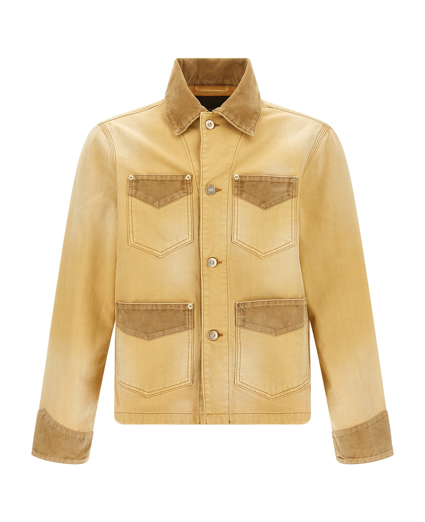 'Sierra' Japanese cotton canvas jacket with tone-on-tone corduroy panels, unlined, back embroidery, shirt collar, front button closure, pockets, long sleeves with cuffs and slightly dropped shoulder. Given the artisanal nature of the fabric, each piece is unique and will be shaped by the wearer over time.