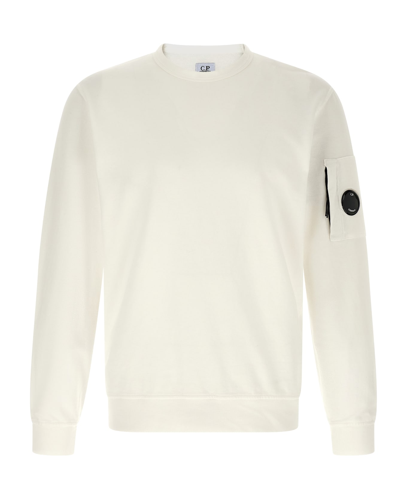 Garment-dyed light cotton fleece sweatshirt, crew neck, long cuffed sleeves and iconic C. P. Company applied lens, headband on the hem.