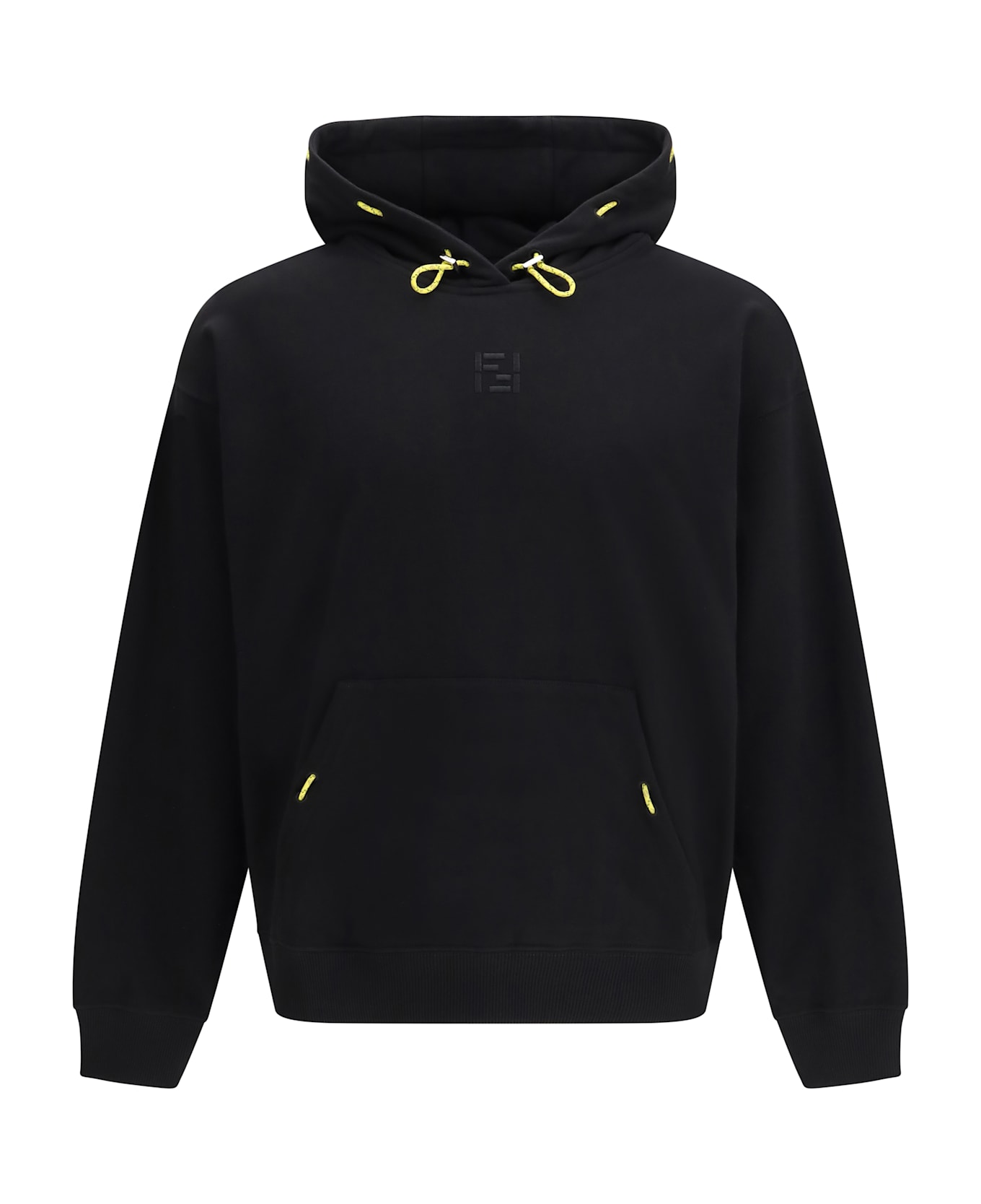 The hooded sweatshirt in cotton with embroidered logo by fendi features a contemporary silhouette and clean construction. the drawstring hood shapes the profile with balance, while the applied pocket adds everyday practicality. ribbed hem and cuffs provide structured definition, finished with an embroidered logo that delivers a distinctive and iconic brand signature. Composition: 100% % Cotton