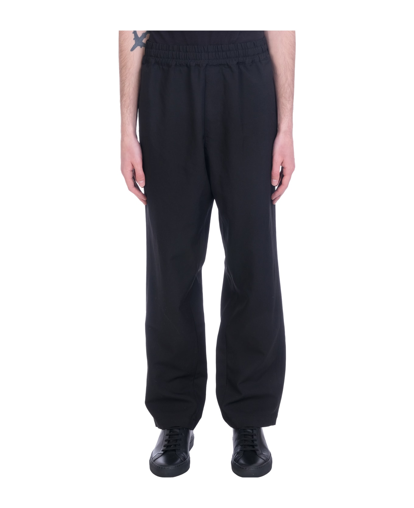Chemical Pants in black polyester, elastic waistband, pockets on side, pockets on backside, 100% polyester, Made in Italy, Mode is 189 cm and wears a size 46