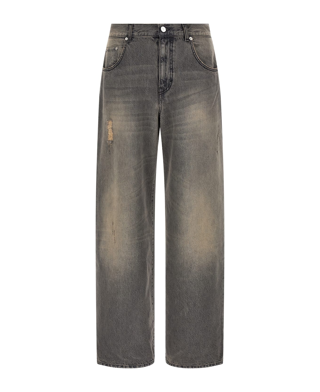 Mass Jeans' cotton denim jeans with used effect, 5-pocket mid waist, wide leg, front zip and button closure, back suede logo tag.