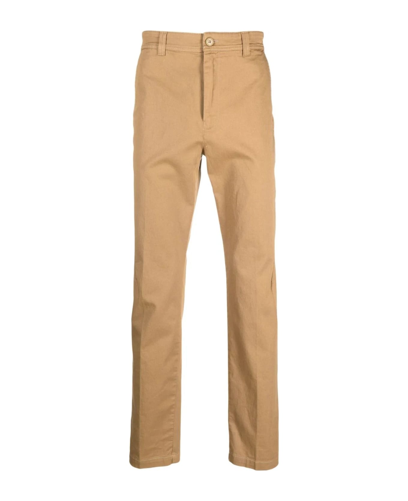 Beige stretch-cotton chino trousers, embroidered logo, belt loops, mid-rise, straight leg, front button and zip fastening, two rear button-fastening pockets Composition: Cotton, 97% , Elastane, 3%