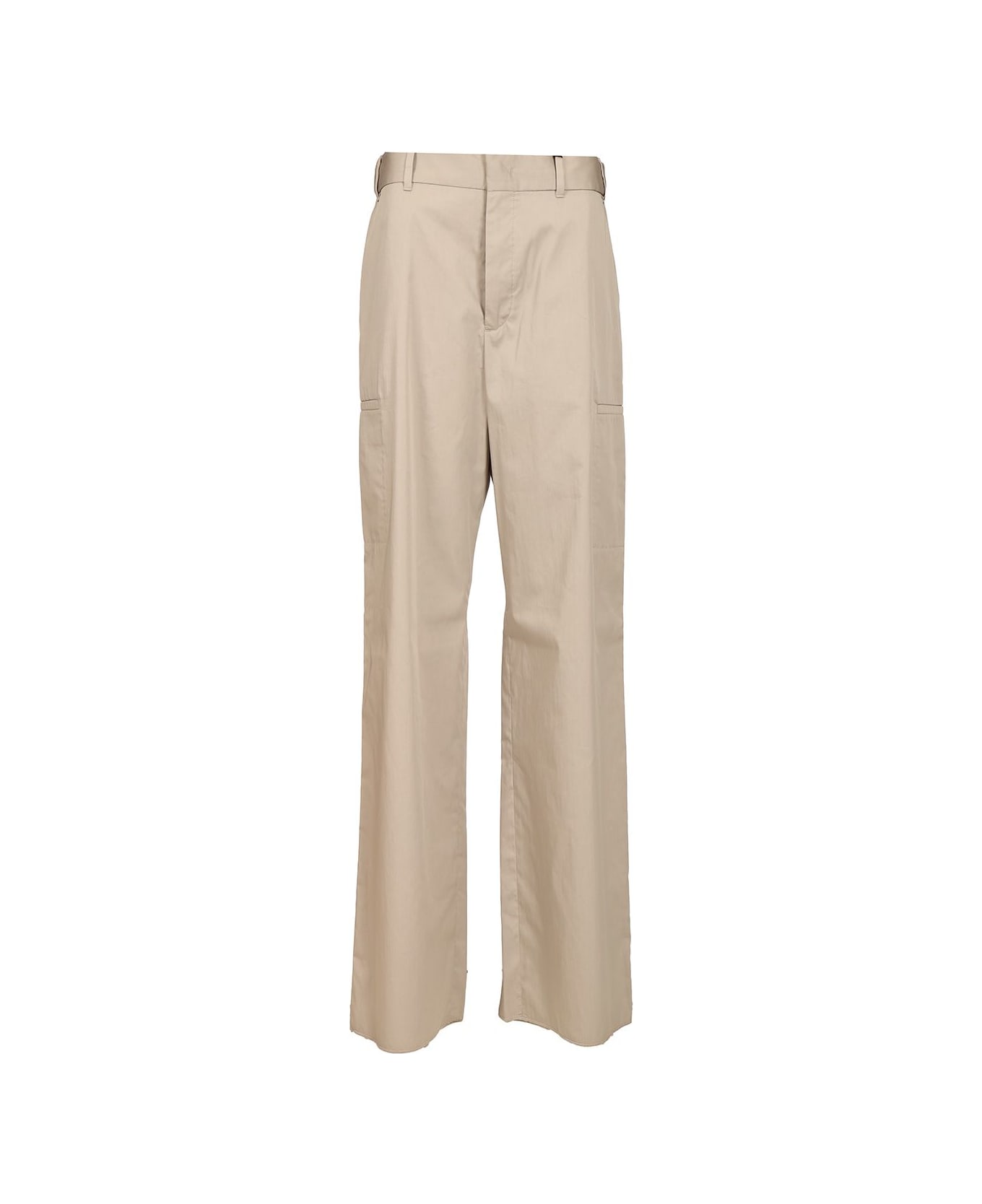 Cotton cargo trousers from Fendi, featuring side pockets, welt pockets on the back and cargo pockets on the legs with welt entry, belt loops and elasticated side inserts at the waist, hidden zip fastening, palladium metal FF logo applied under the right back pocket.