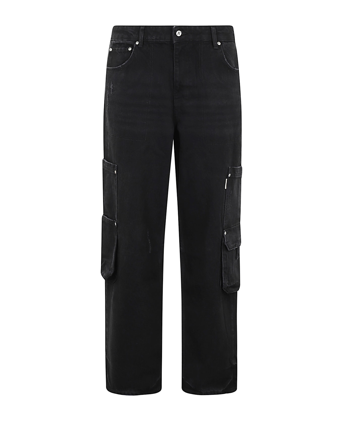 R3 Workshop jeans - Represent - Black color - Cotton denim fabric - Regular waistband with belt loops - Straight leg - Five-pocket style - Side cargo pockets - Front zipper and button closure - Loose fit.