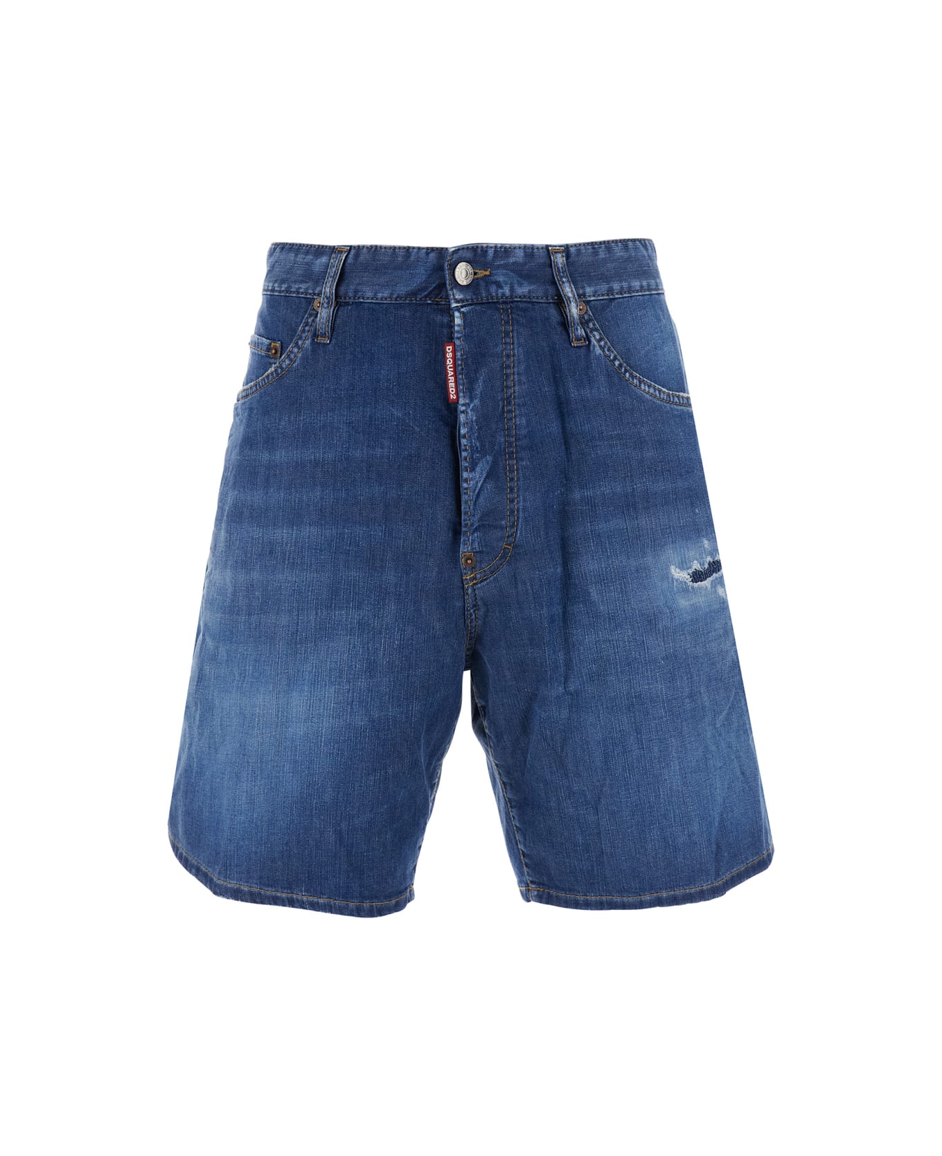 Blue denim shorts with five-pocket details. They feature a zip and button closure at the front. The waist is adjustable with Belt Loops. The back is characterized by two patch pockets. Made of Cotton. Regular fit.
