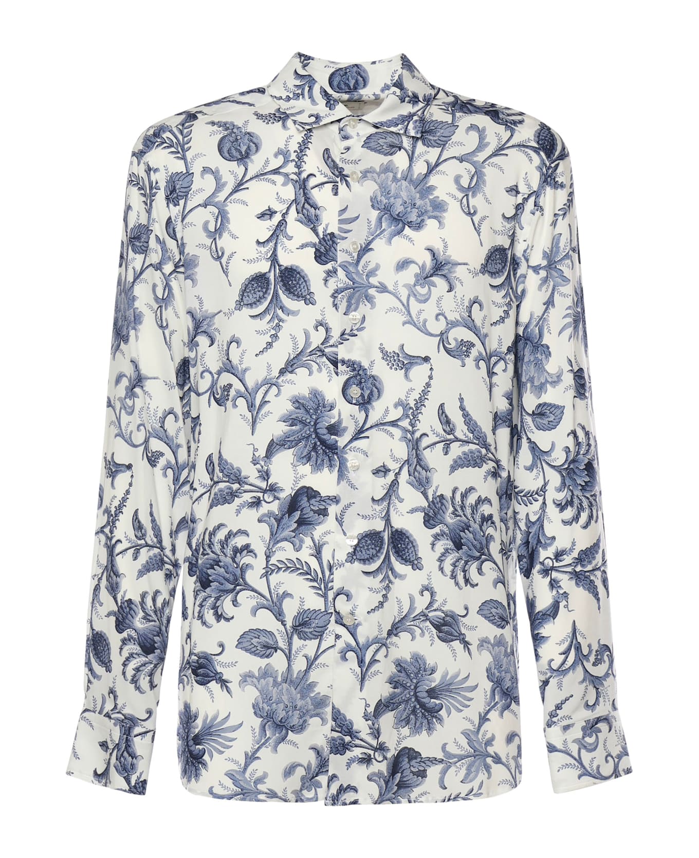 - Front button closure - Long sleeves - Pointed collar - Buttoned cuffs - Regular fit - Made in Italy - Size shown is 40 - Color: White, Blue