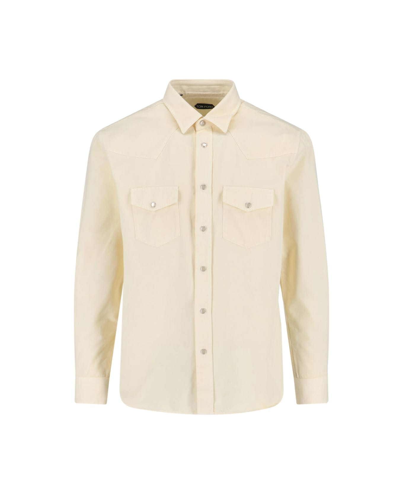 Tom Ford 'western' cream cotton shirt with classic collar, button closure, long sleeves, two front button flap pockets, button cuffs, curved hem. Composition: 100% Cotton