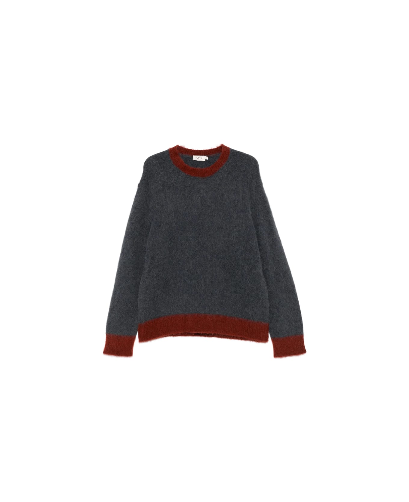 dark-grey crew neck ribbed hem long sleeves contrasting trims