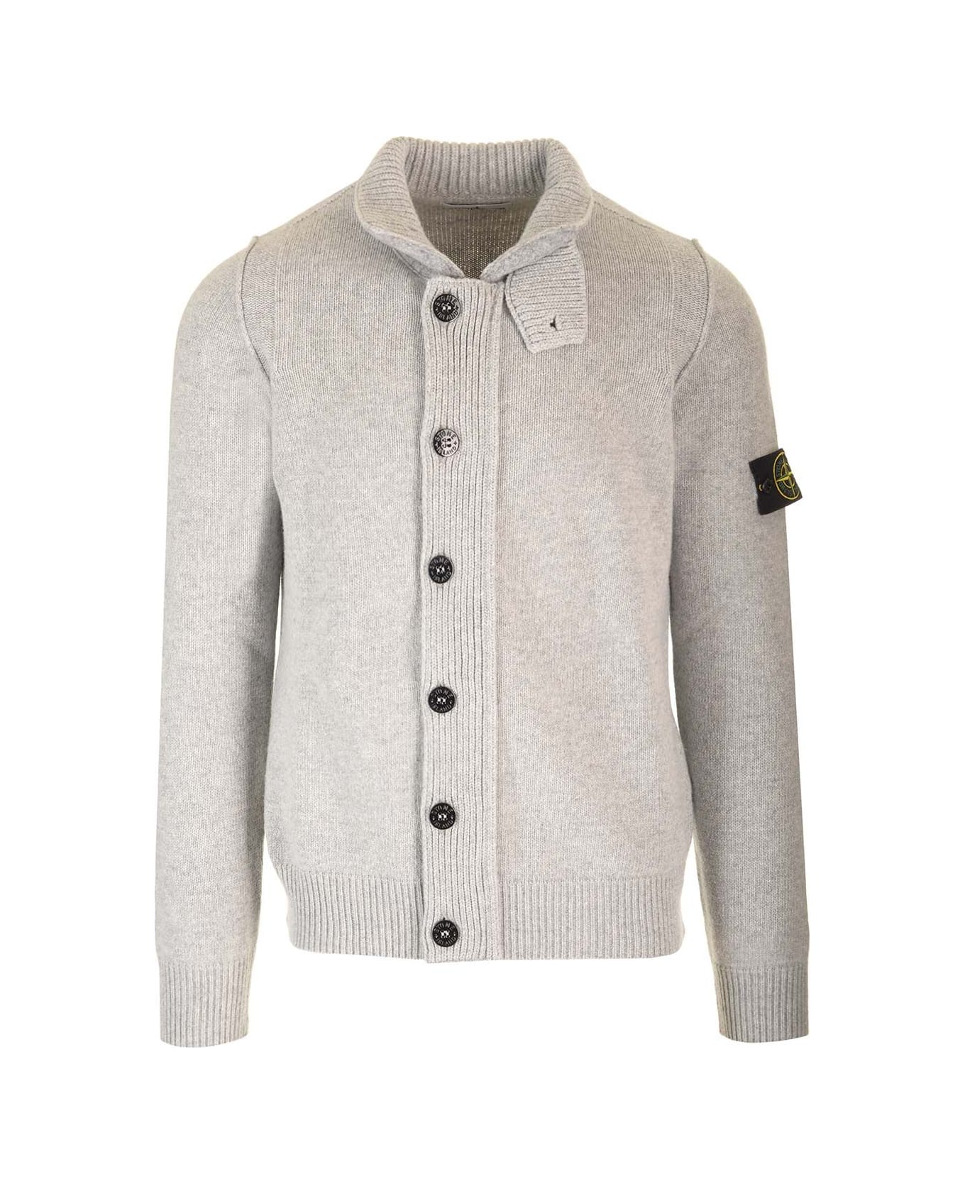 Wool cardigan from Stone Island, with Stone Island badge on the left sleeve, front button fastening, ribbed cuffs, collar and hem. Composition: