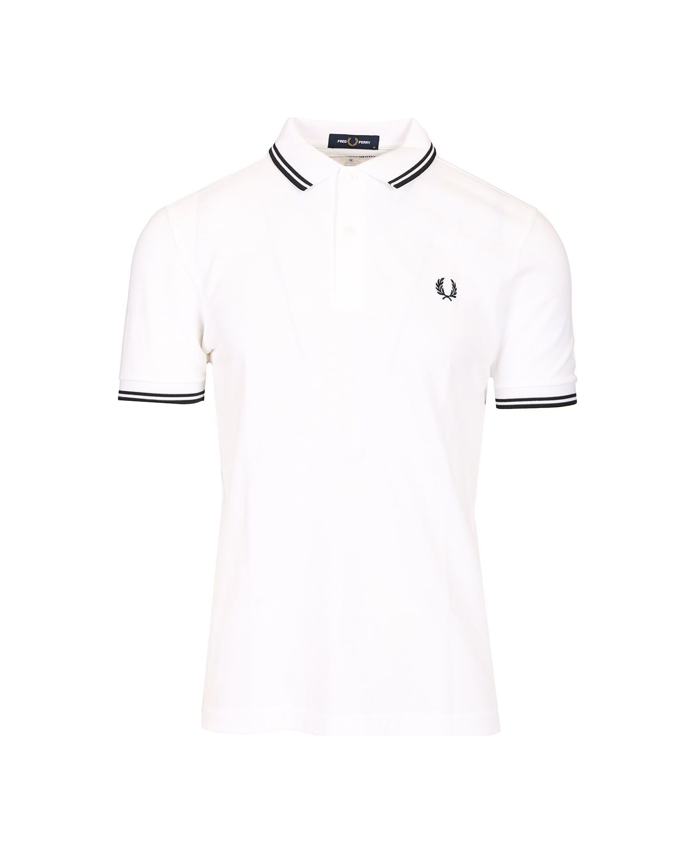 Comme des Garçons Shirt x Fred Perry Polo with white details on the collar and armholes, embroidered logo on the chest, white Strong will writing on the back and collar with two-button placket.