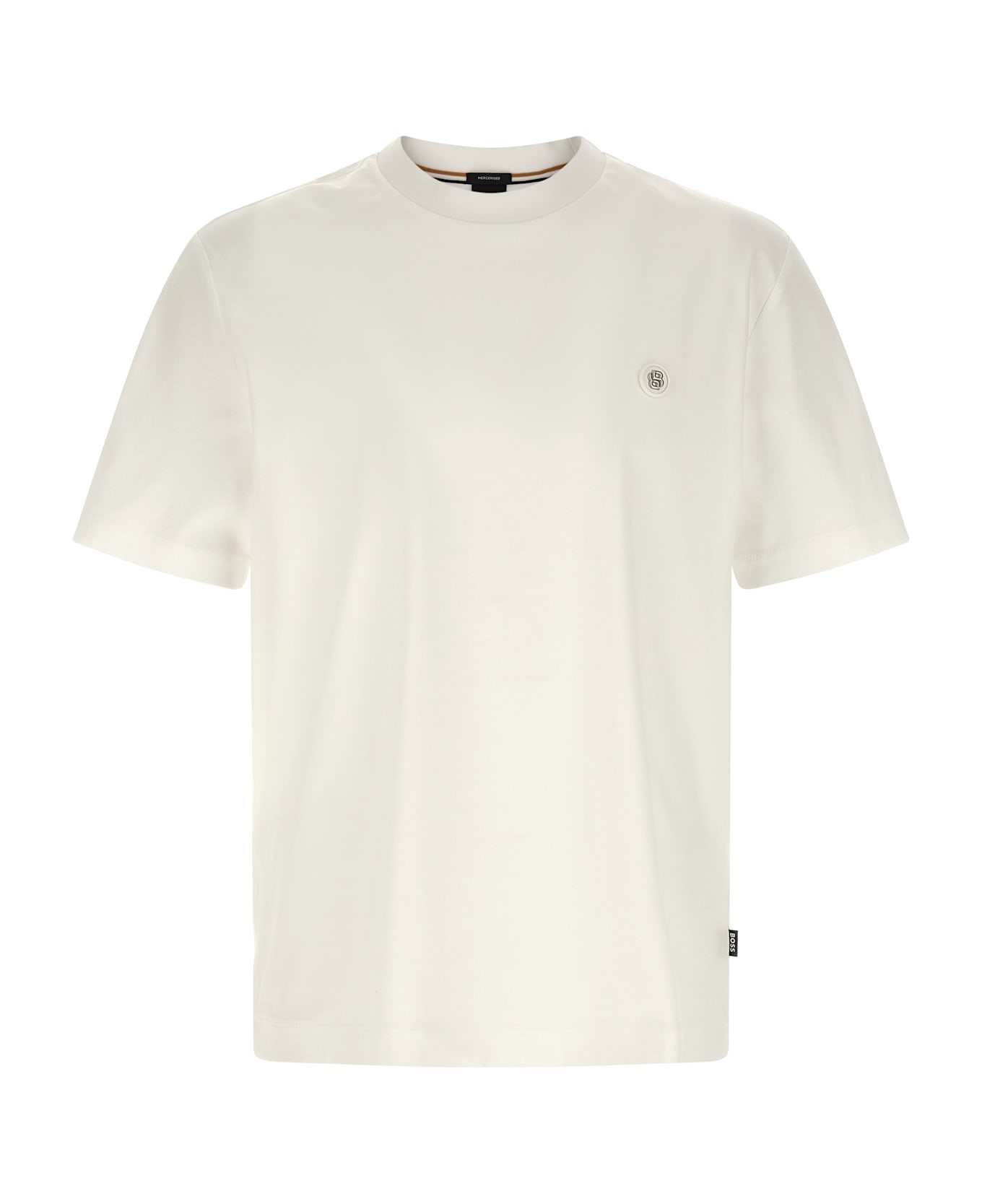 'C-Taut' cotton T-shirt, tone-on-tone leather patch with front metal logo, crew neck, short sleeves, side vents.