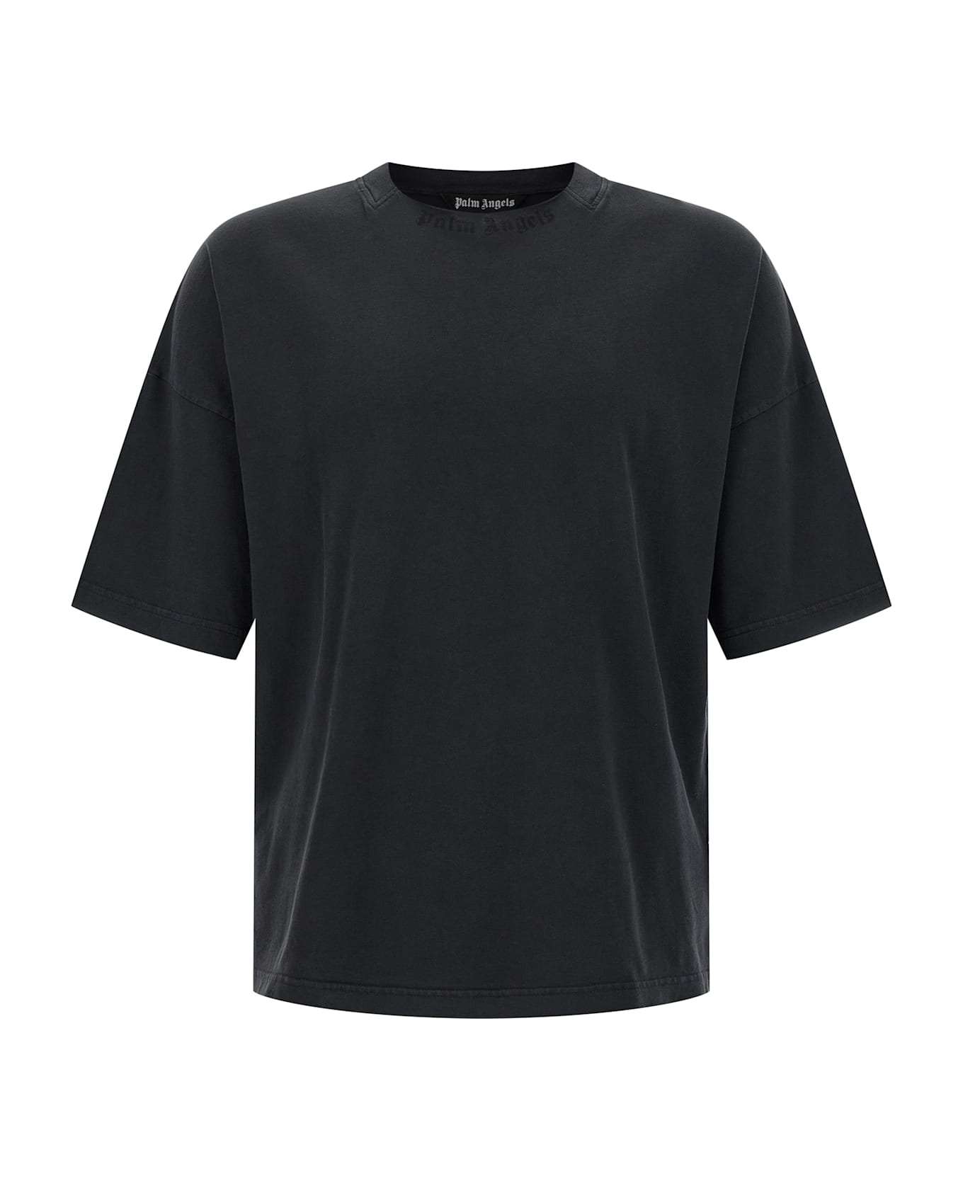 'Curved Logo' cotton T-shirt with raw cut neckline, tone-on-tone logo print, dropped shoulders, short sleeves. Composition: 100% cotton