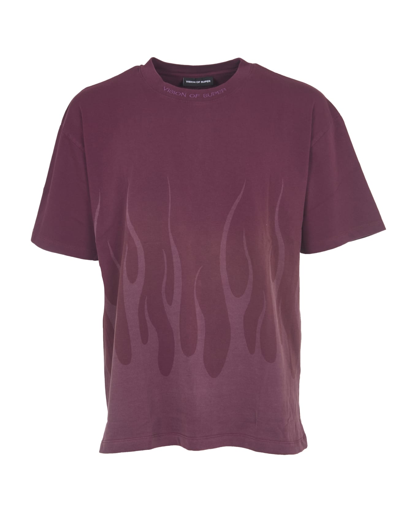 Grape Wine cotton T-shirt with tone-on-tone flame print. T-shirt with Vision of Super logo embroidered on the crew neck. Model with short sleeves and round neck. -100% cotton