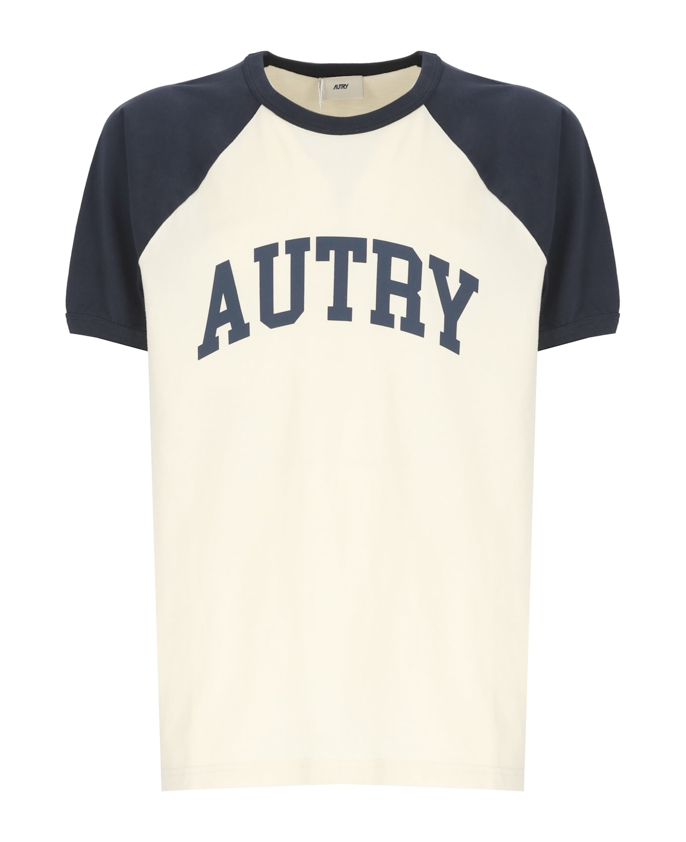 - Ivory Autry cotton t-shirt for man - Crew neckline - Contrasting color short sleeves - Front contrasting color logo