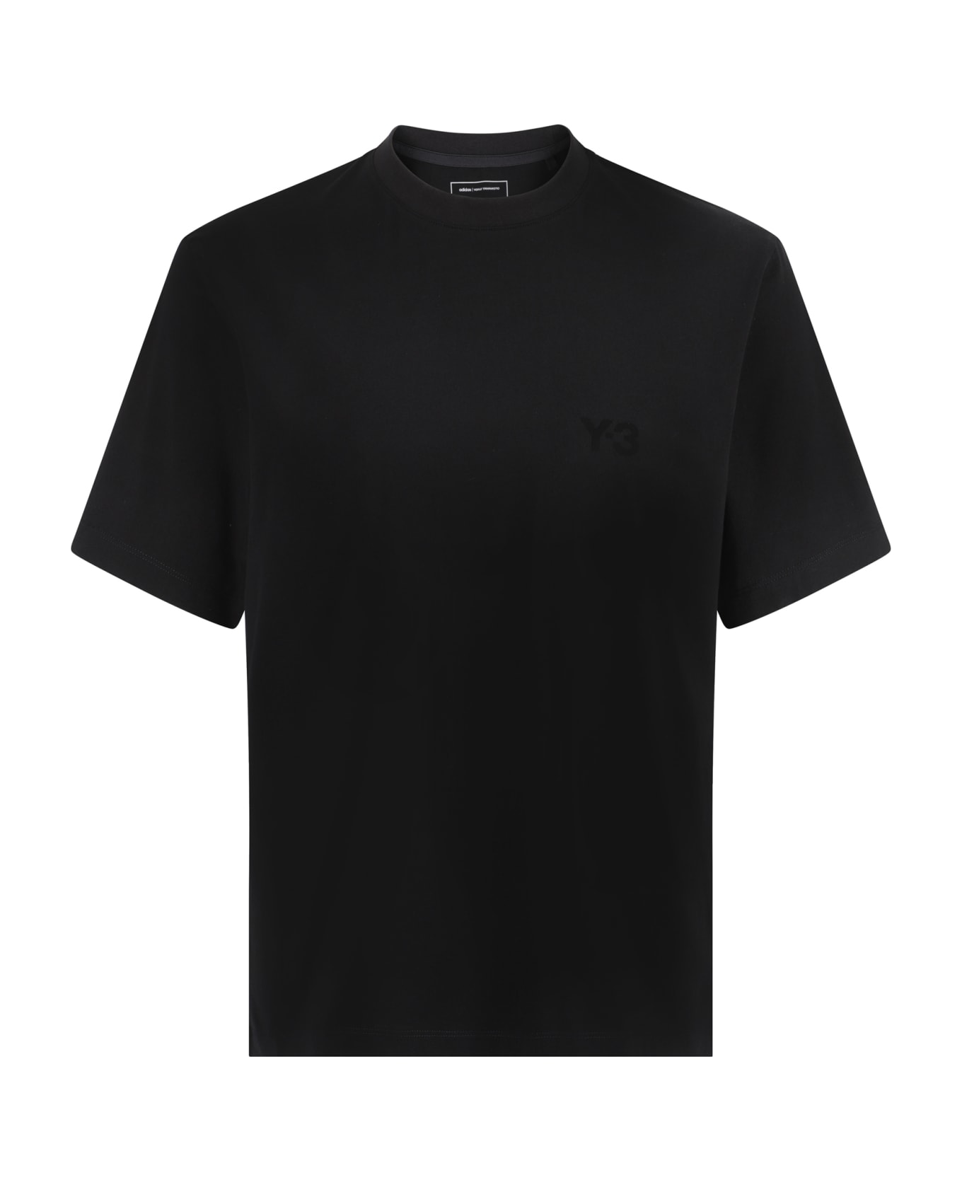 Cotton t-shirt by y-3, ribbed crew neck, contrasting iconic brand monogram at front, monochrome pattern, regular fit