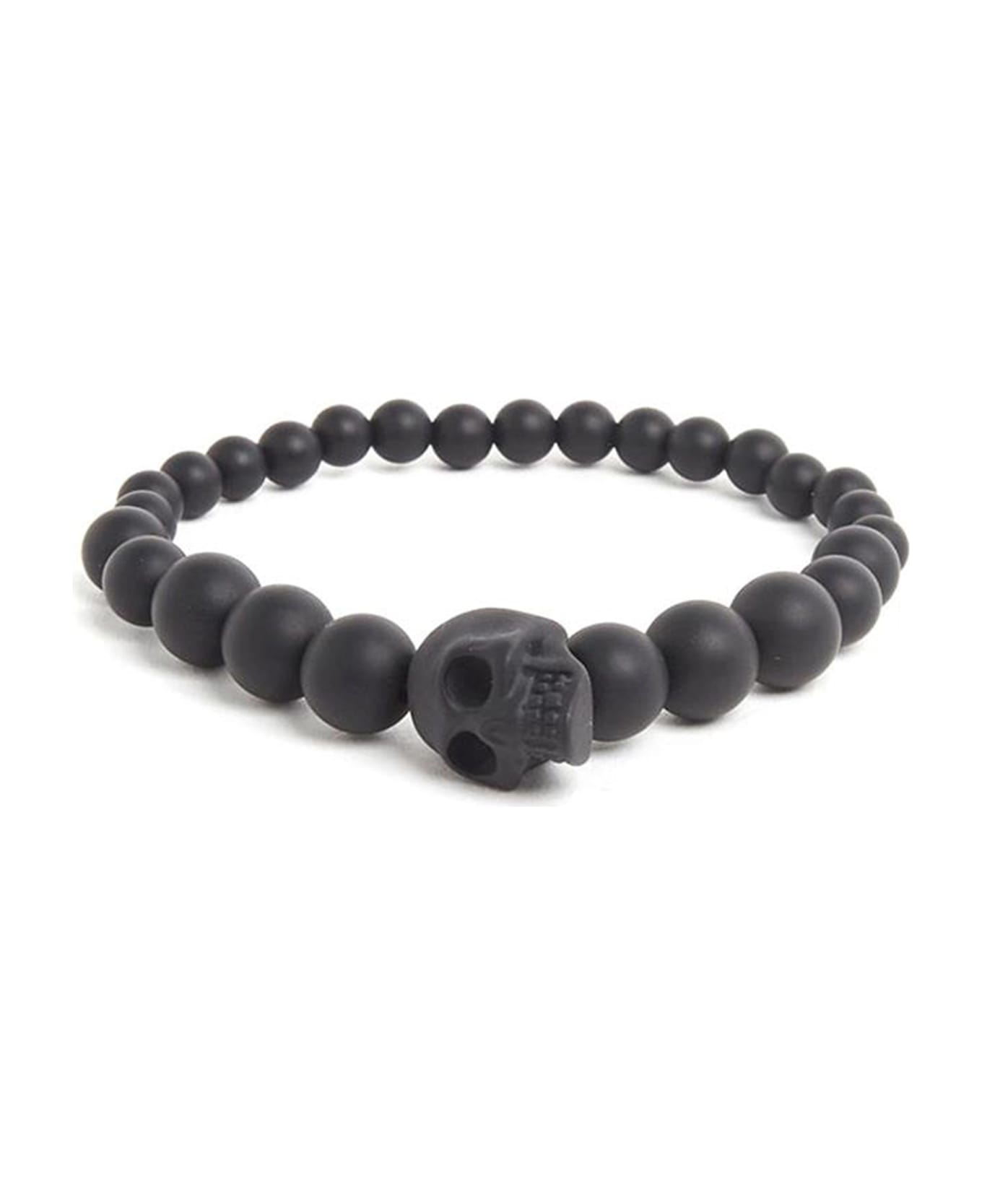 'Skull Ball' elastic bracelet in enamelled metal with spheres of different sizes and engraved skull. Composition: 100% steel