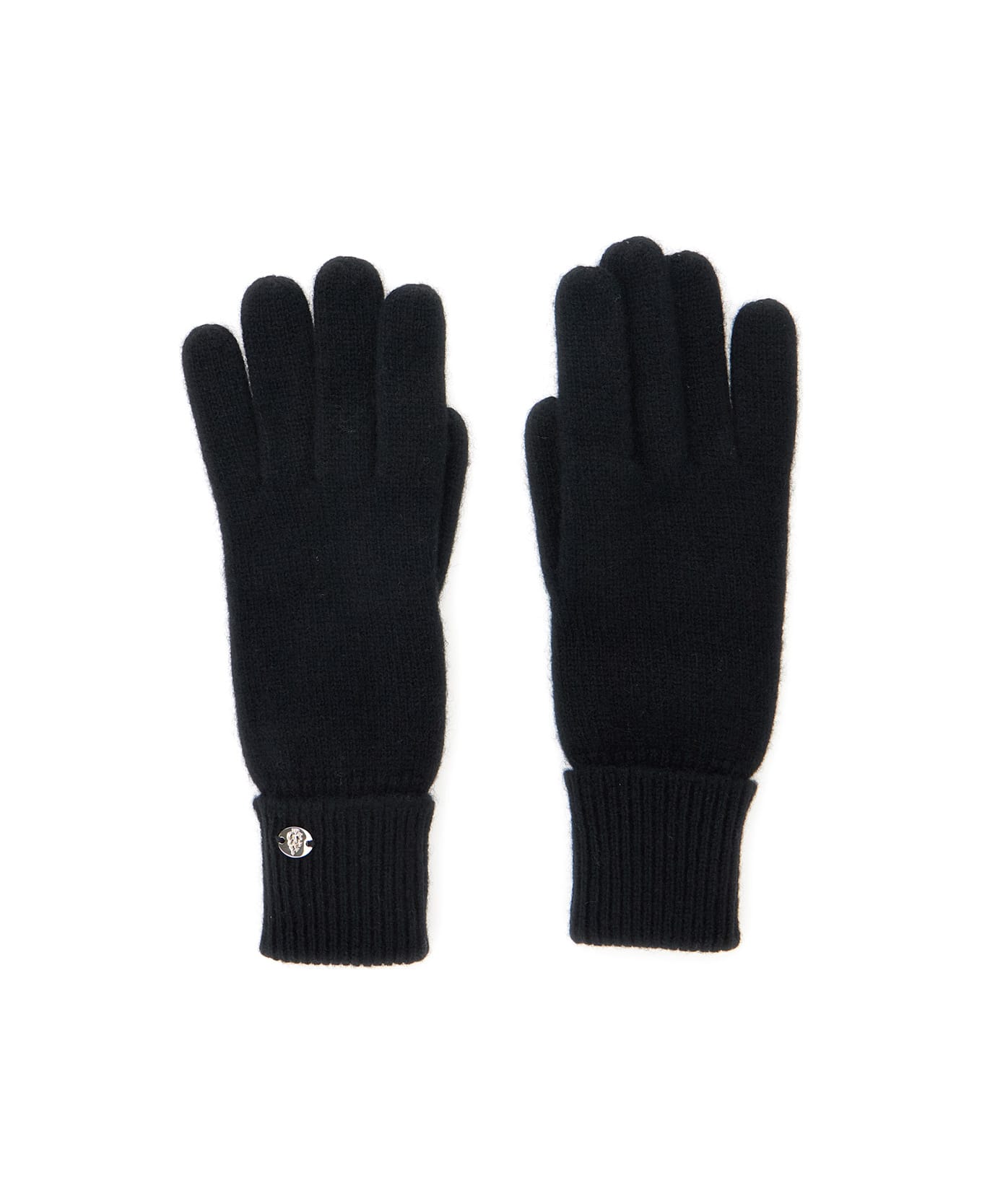 'blaire' Black Gloves With Logo Plaque Detail On The Front And Ribbed Details In Cashmere Woman