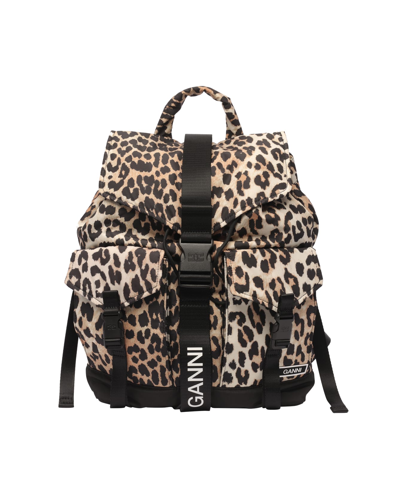Ganni leopard tech backpack, coulisse and buckle closure, one inner zip pocket, two frontal buckle pockets, adjustable shoulder strap, one handle Composition: 100% Polyester
