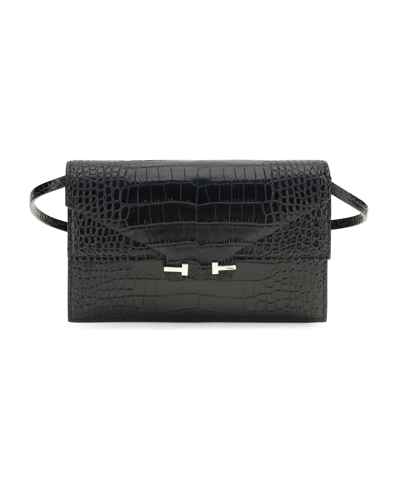 The crocodile print shoulder bag by tom ford exudes luxury and character with its refined crocodile-effect finish. featuring a sophisticated multi-purpose design and an iconic double t snap closure, this elegant and bold accessory is perfect for completing sophisticated looks from day to night.