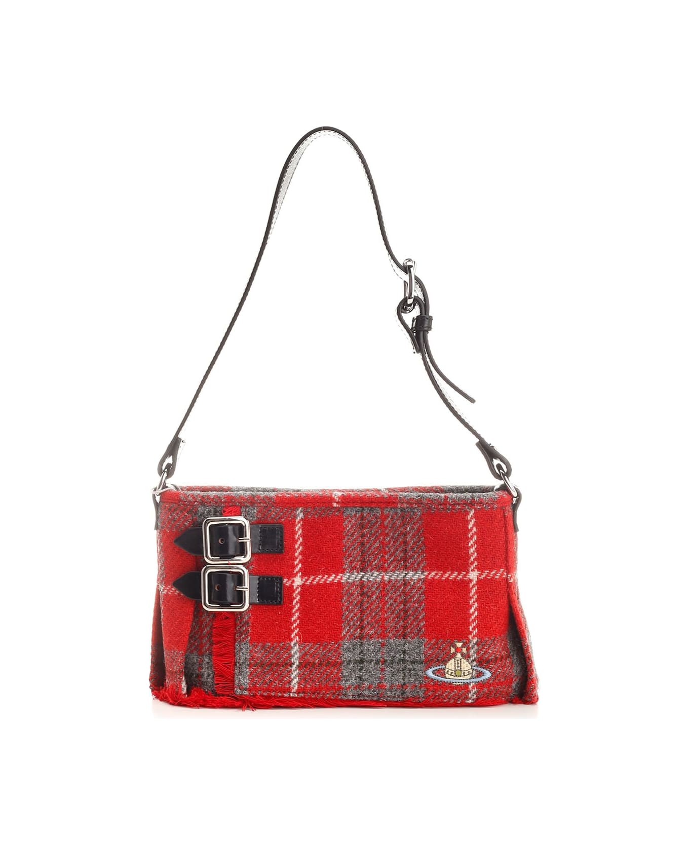 "Heather" shoulder bag inspired by Vivienne Westwood's iconic kilt with buckle detail, adjustable shoulder strap. Composition: 100% Wool