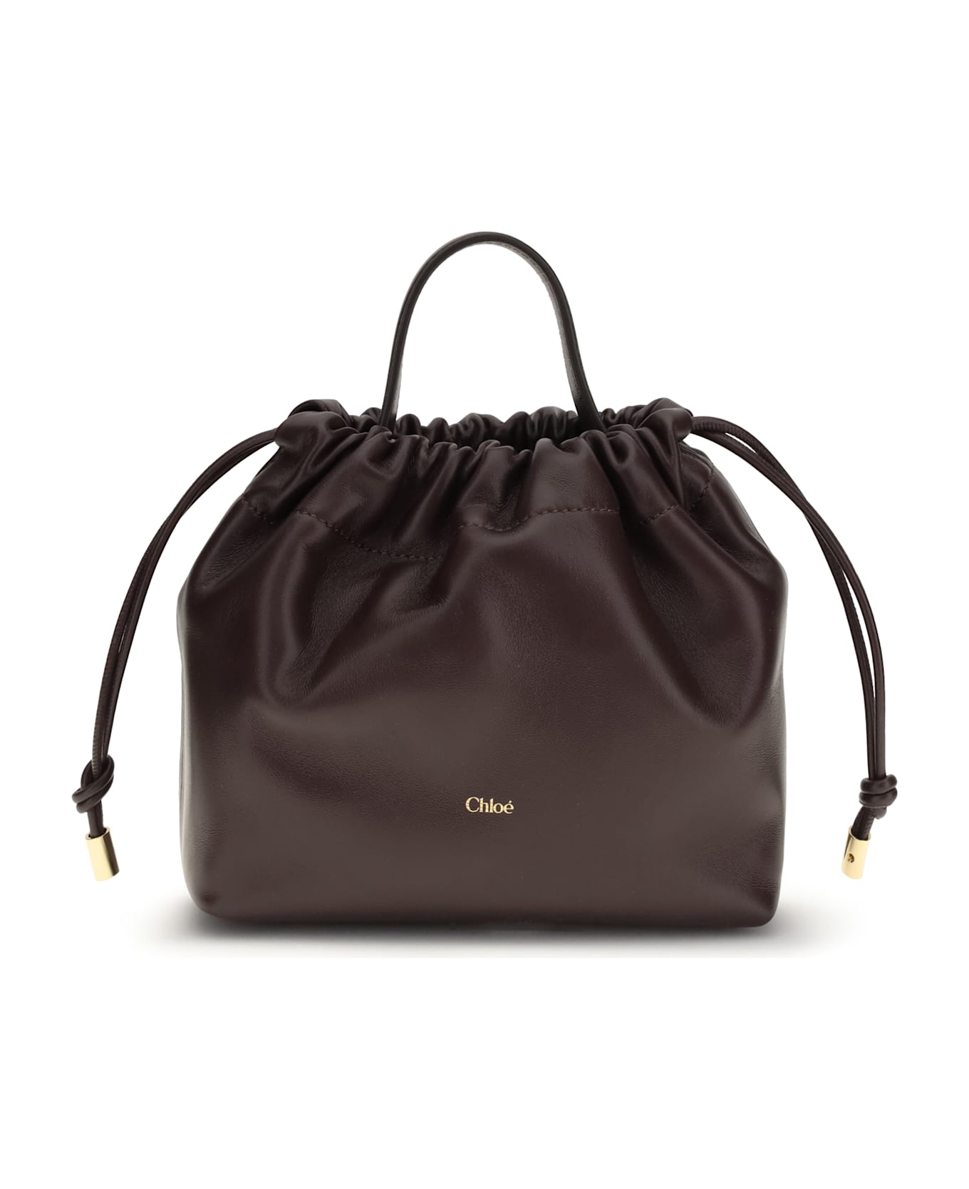 The icons mini shoulder bag by chloé is crafted from soft smooth lambskin nappa leather and features a refined drawstring closure. the precious gold chain, embellished with horse medal detail, small charms and the chloé signature, recalls the iconic aesthetic of the maison. thanks to the top handle and various chain loops and hooks, the model can be worn in multiple ways. complemented by a main compartment, it is a compact and richly detailed bag with a distinctive appeal.