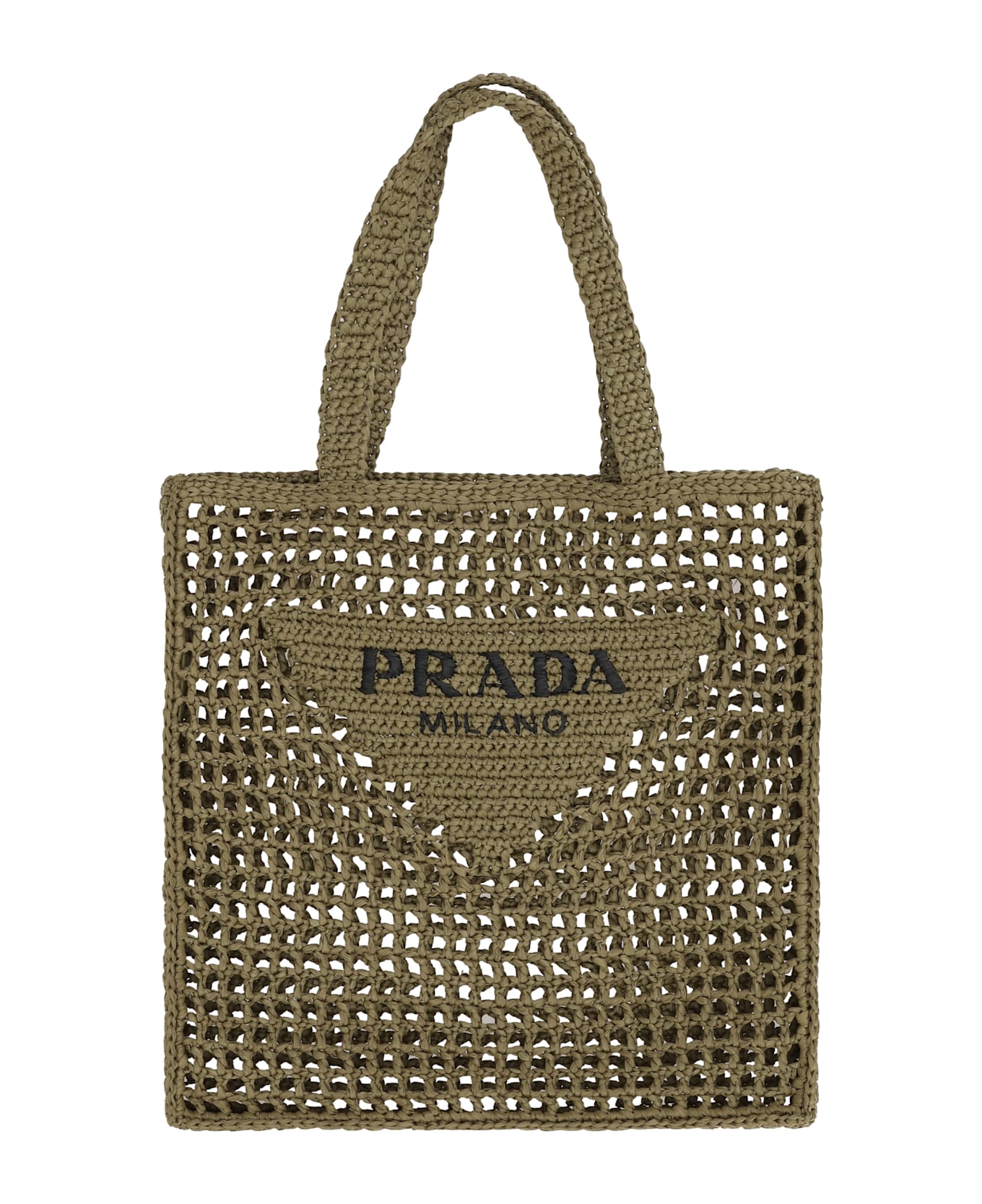 Prada's raffia shoulder bag is a summery and refined accessory, crafted with a perforated crochet workmanship that gives it a light and sophisticated look. the brand's iconic contrasting embroidered logo on the front adds a distinctive and recognizable touch. this bag combines practicality and style, ideal for casual-chic looks during the warm season. Composition: 100% % Raffia