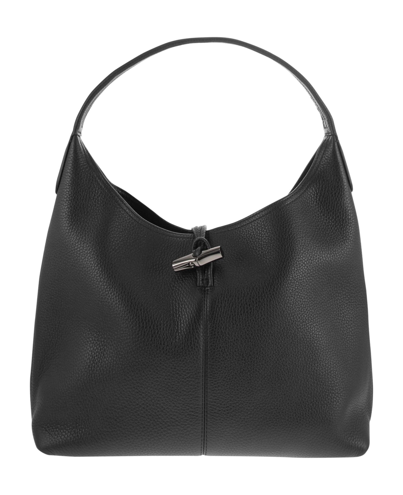 Understated and elegant, this bag fits comfortably on the shoulder or on the arm to highlight its characteristic trapeze shape. Longchamp created the ROSEAU ESSENTIAL line by combining simple and sophisticated style. Soft, understated and without too many embellishments, the models are embellished with the brand's iconic bamboo-shaped press stud. - Zipped pocket : 1 - Interior flat pocket : 1 - Key holder : 1 DESIGNER ID: 10184 968 001